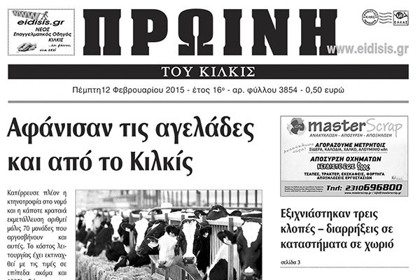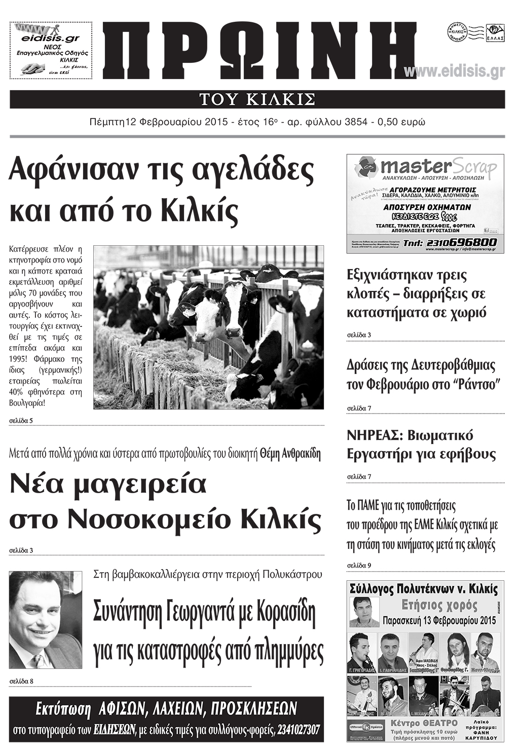 Πέντε χρόνια πριν. Διαβάστε τι έγραφε η καθημερινή εφημερίδα ΠΡΩΙΝΗ του Κιλκίς (12-2-2015)