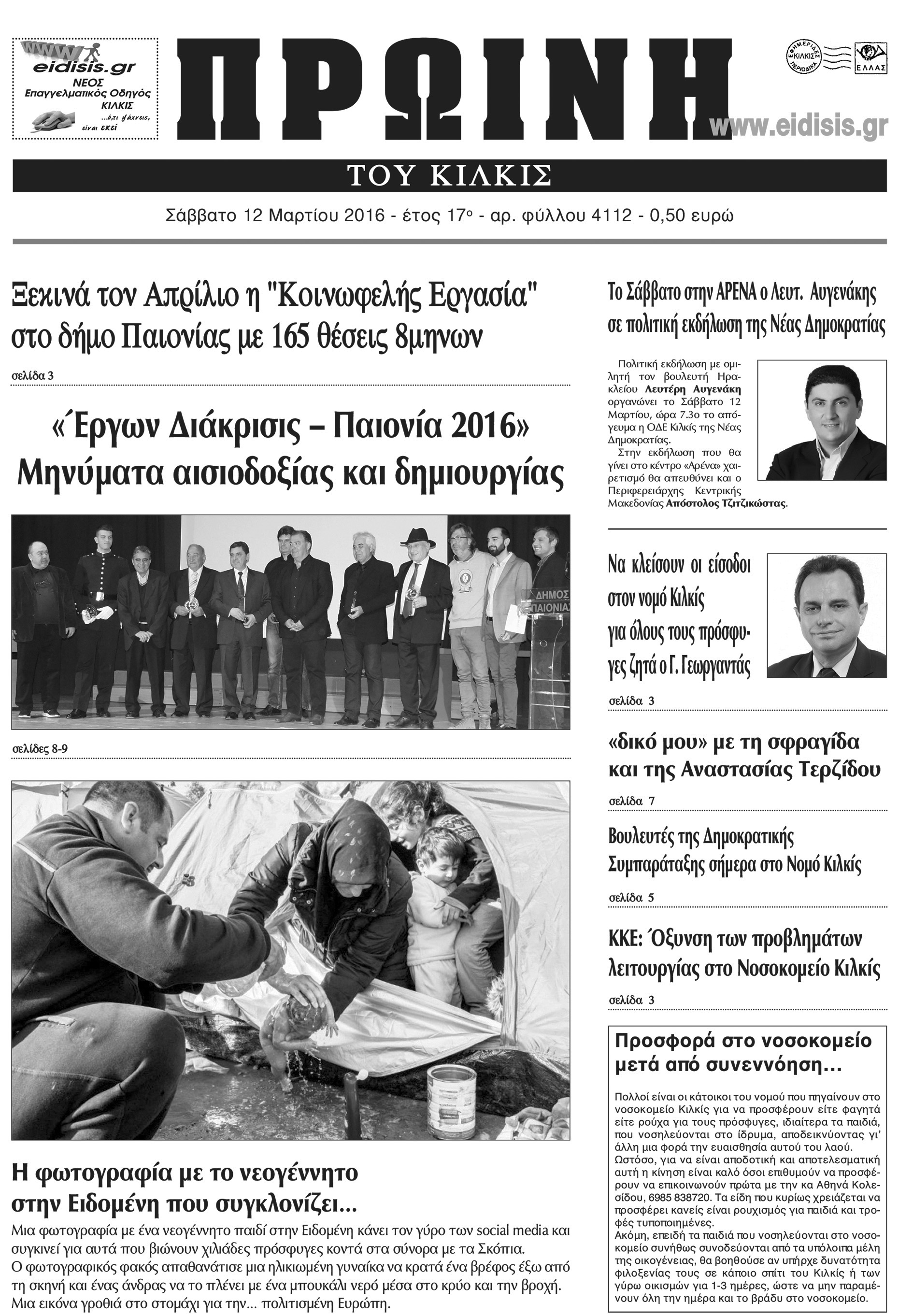 Πέντε χρόνια πριν. Διαβάστε τι έγραφε η καθημερινή εφημερίδα ΠΡΩΙΝΗ του Κιλκίς (12-3-2016)