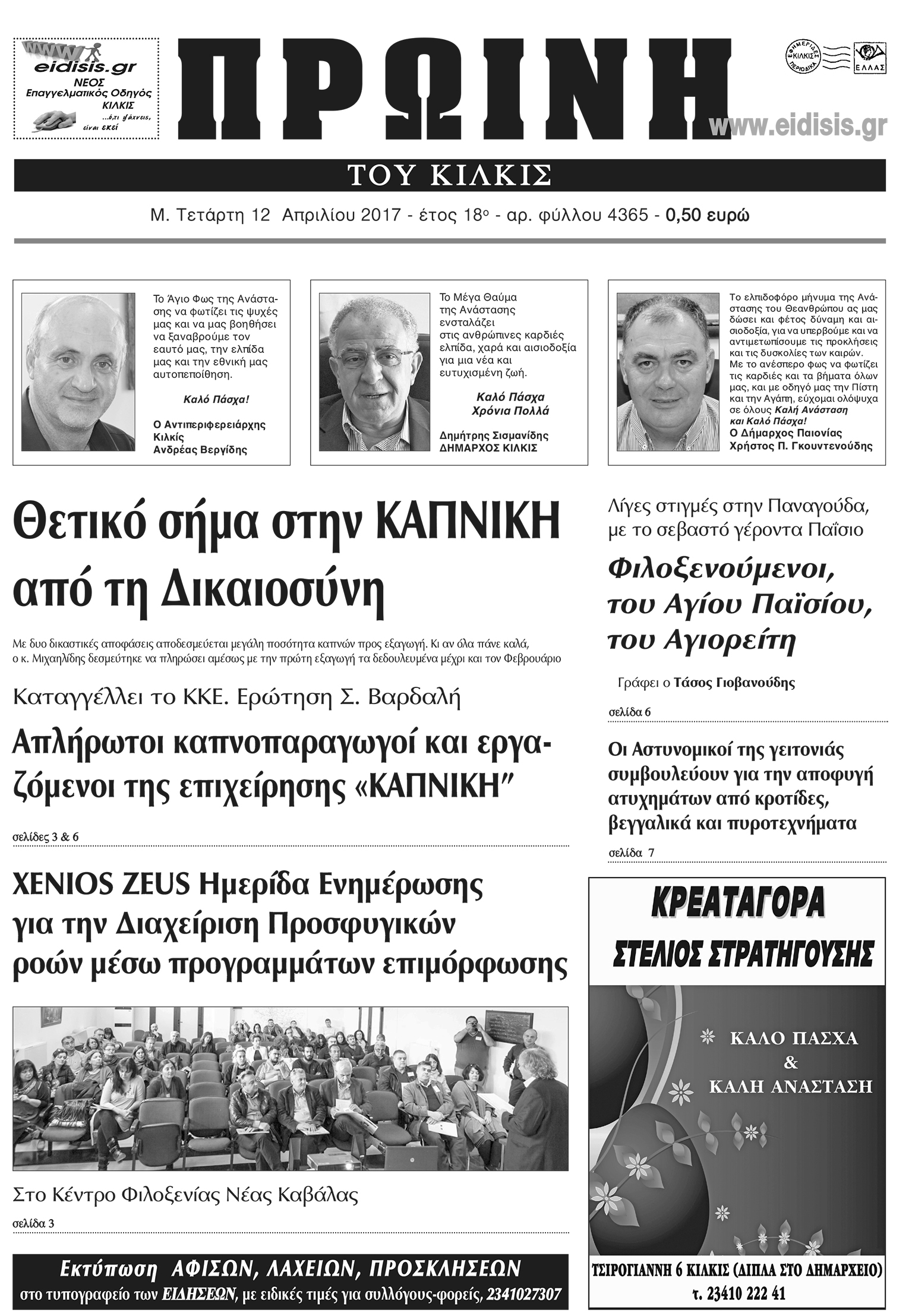Πέντε χρόνια πριν. Διαβάστε τι έγραφε η καθημερινή εφημερίδα ΠΡΩΙΝΗ του Κιλκίς (12-4-2017)