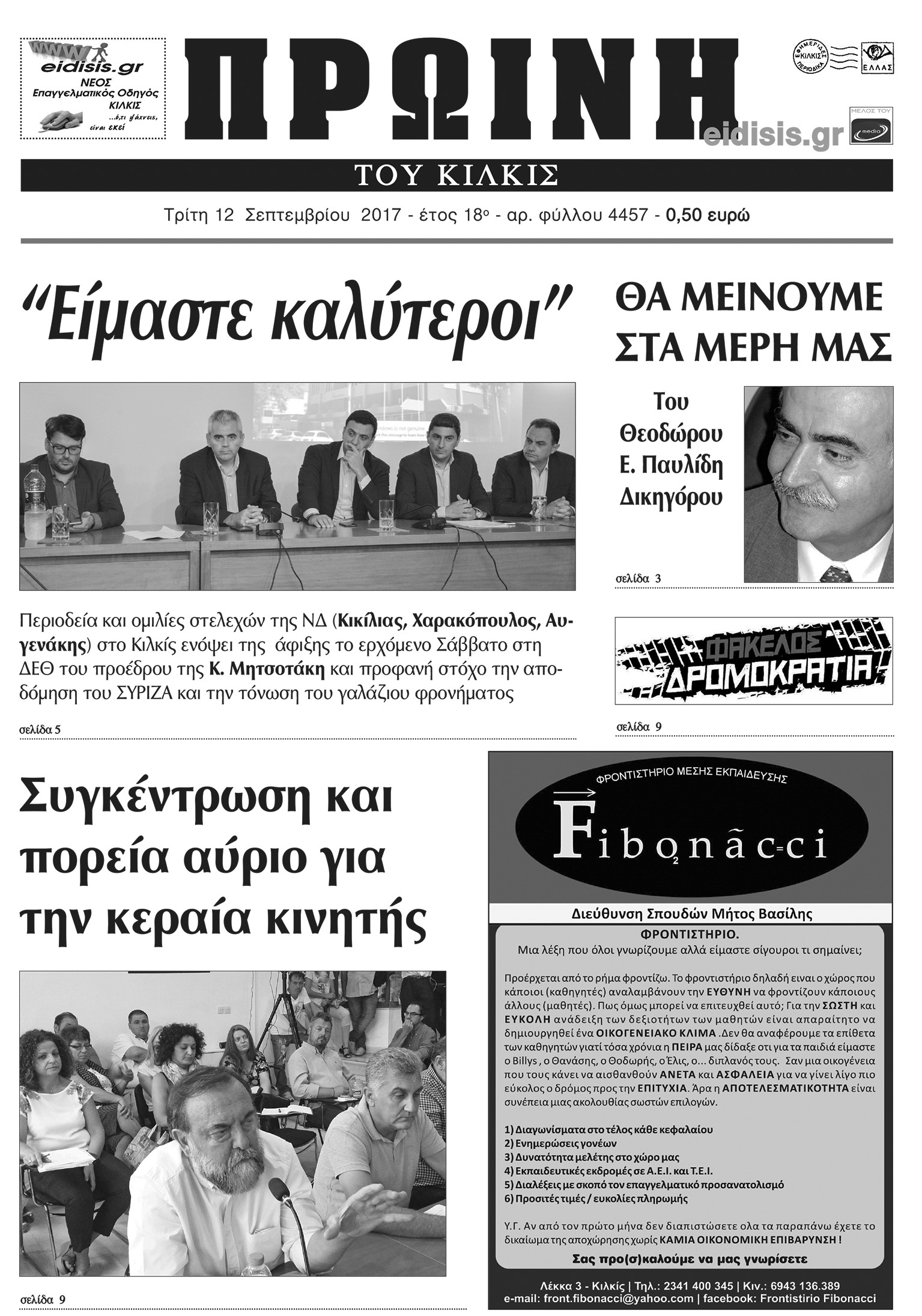 Πέντε χρόνια πριν. Διαβάστε τι έγραφε η καθημερινή εφημερίδα ΠΡΩΙΝΗ του Κιλκίς (12-9-2017)