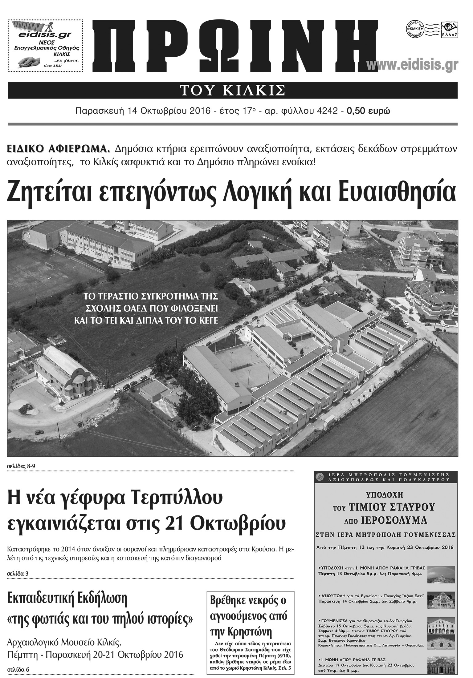 Πέντε χρόνια πριν. Διαβάστε τι έγραφε η καθημερινή εφημερίδα ΠΡΩΙΝΗ του Κιλκίς (14-10-2016)