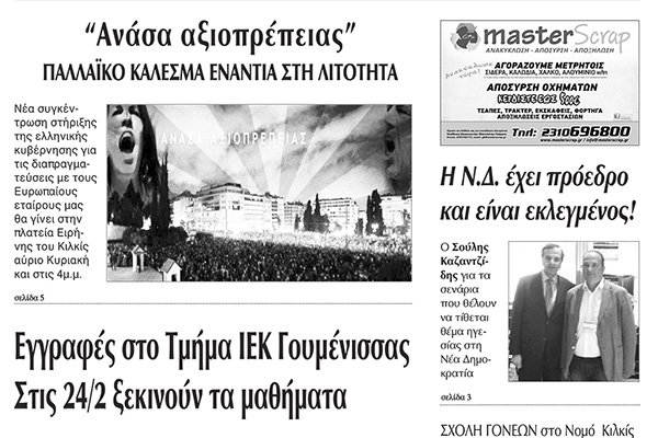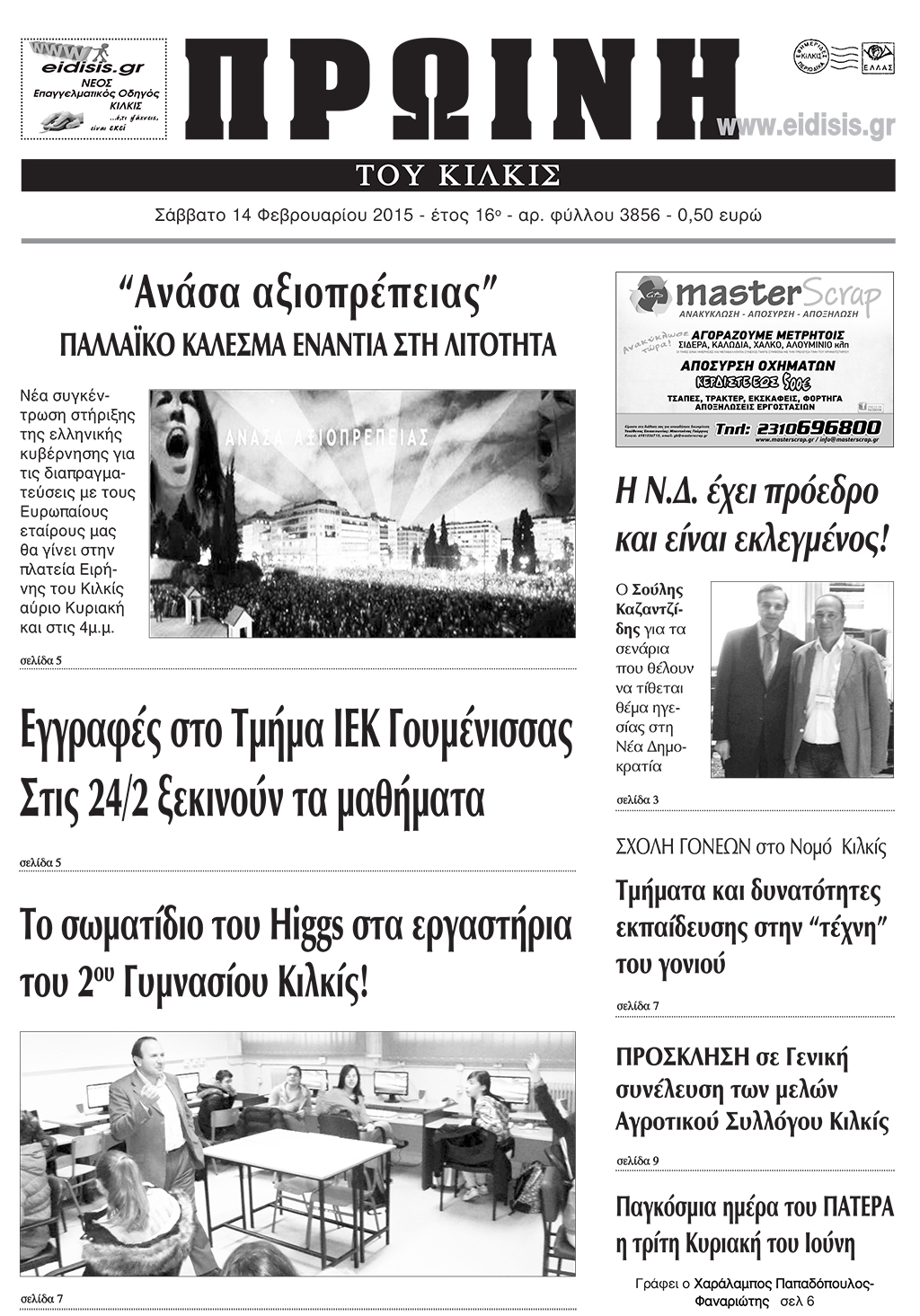 Πέντε χρόνια πριν. Διαβάστε τι έγραφε η καθημερινή εφημερίδα ΠΡΩΙΝΗ του Κιλκίς (14-2-2015)
