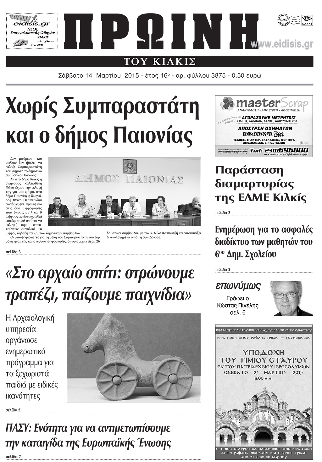 Πέντε χρόνια πριν. Διαβάστε τι έγραφε η καθημερινή εφημερίδα ΠΡΩΙΝΗ του Κιλκίς (14-3-2015)