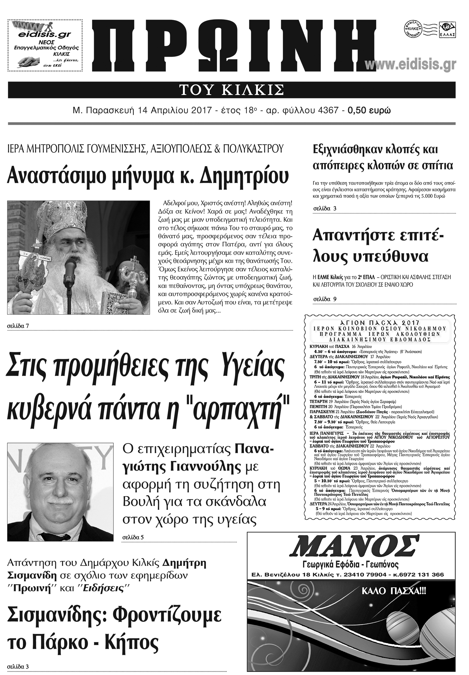 Πέντε χρόνια πριν. Διαβάστε τι έγραφε η καθημερινή εφημερίδα ΠΡΩΙΝΗ του Κιλκίς (14-4-2017)