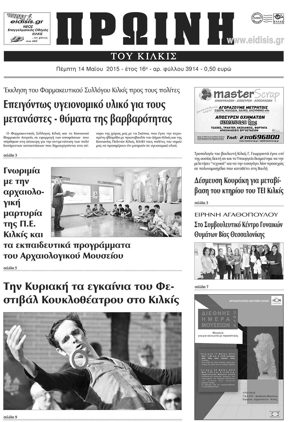 Πέντε χρόνια πριν. Διαβάστε τι έγραφε η καθημερινή εφημερίδα ΠΡΩΙΝΗ του Κιλκίς (14-5-2015)