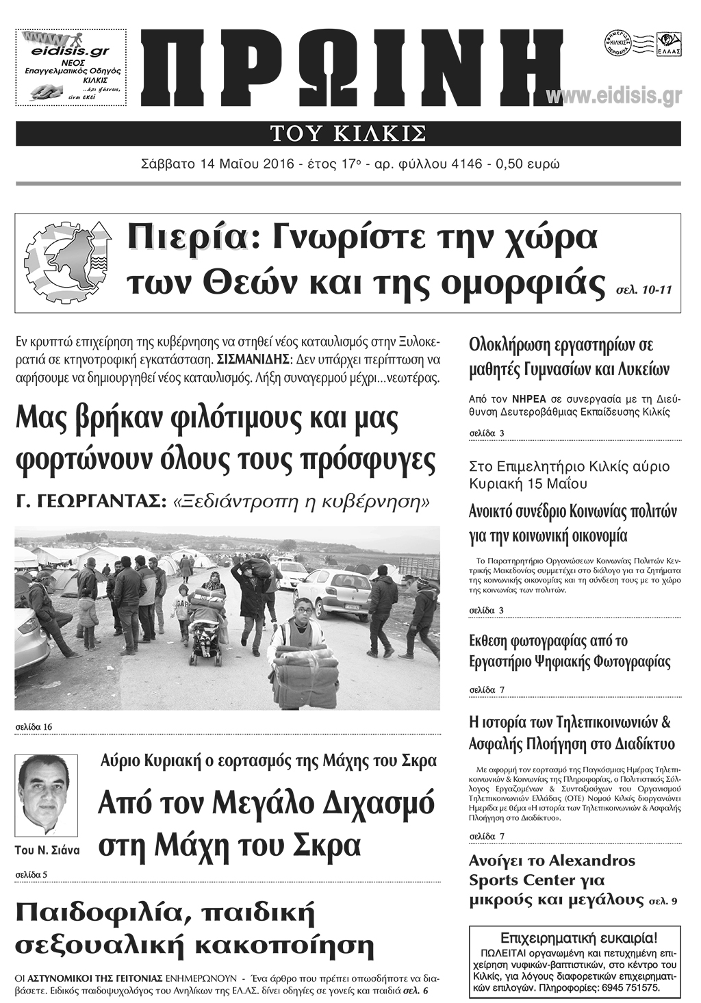 Πέντε χρόνια πριν. Διαβάστε τι έγραφε η καθημερινή εφημερίδα ΠΡΩΙΝΗ του Κιλκίς (14-5-2016)