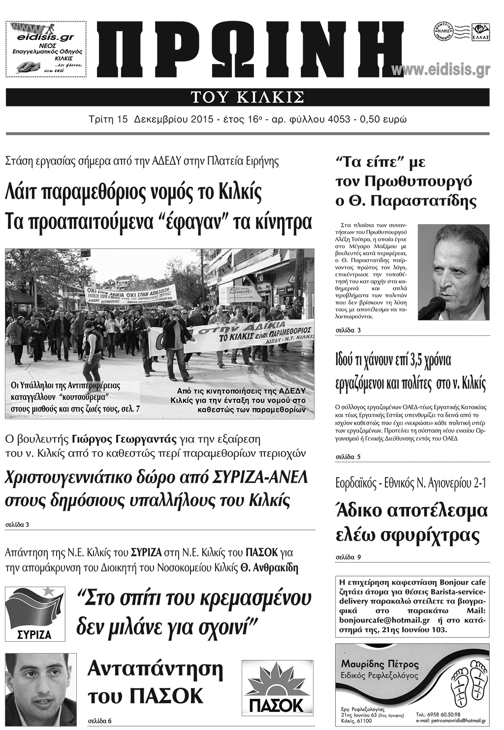 Πέντε χρόνια πριν. Διαβάστε τι έγραφε η καθημερινή εφημερίδα ΠΡΩΙΝΗ του Κιλκίς (15-12-2015)
