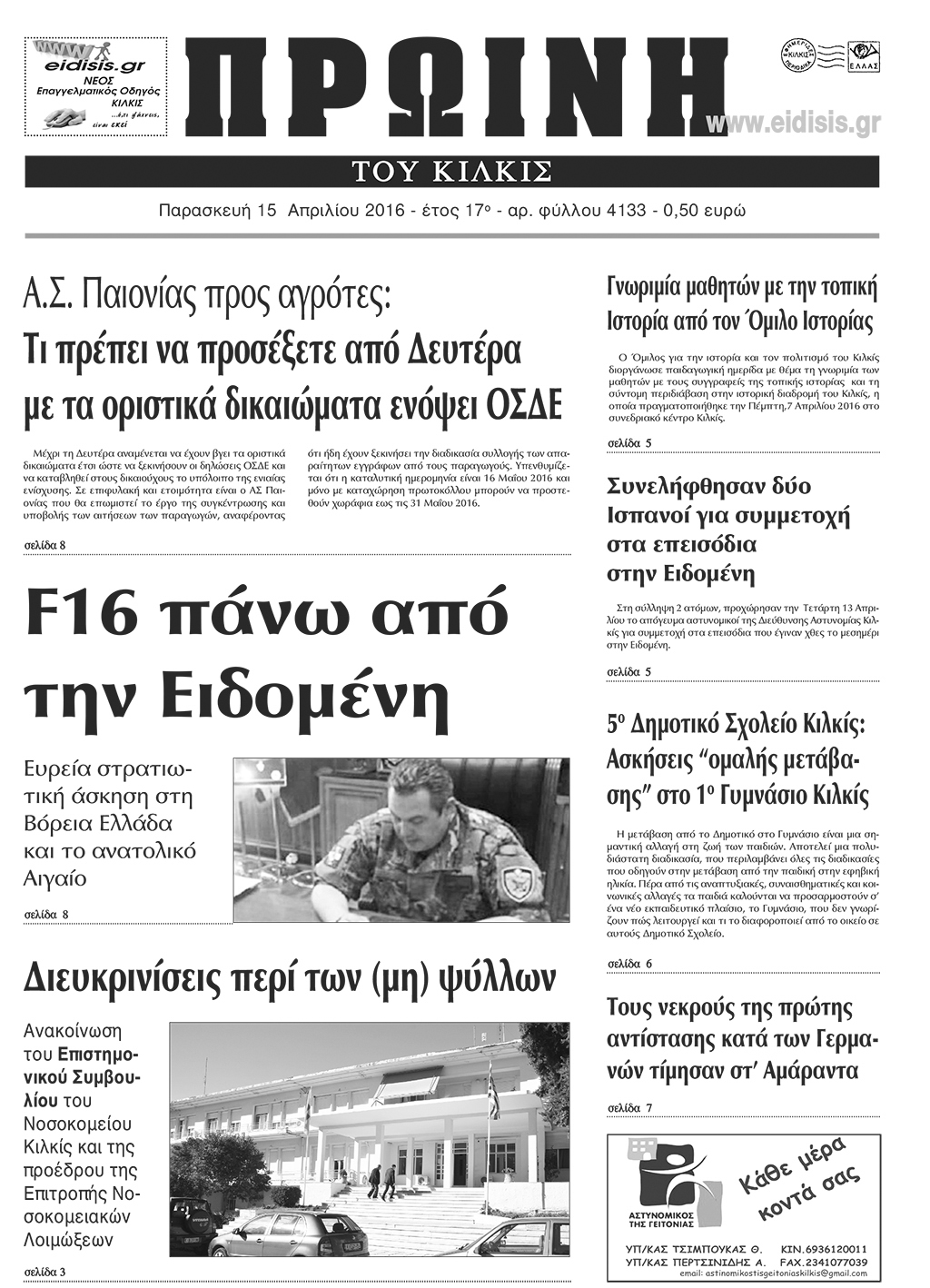 Πέντε χρόνια πριν. Διαβάστε τι έγραφε η καθημερινή εφημερίδα ΠΡΩΙΝΗ του Κιλκίς (15-4-2016)