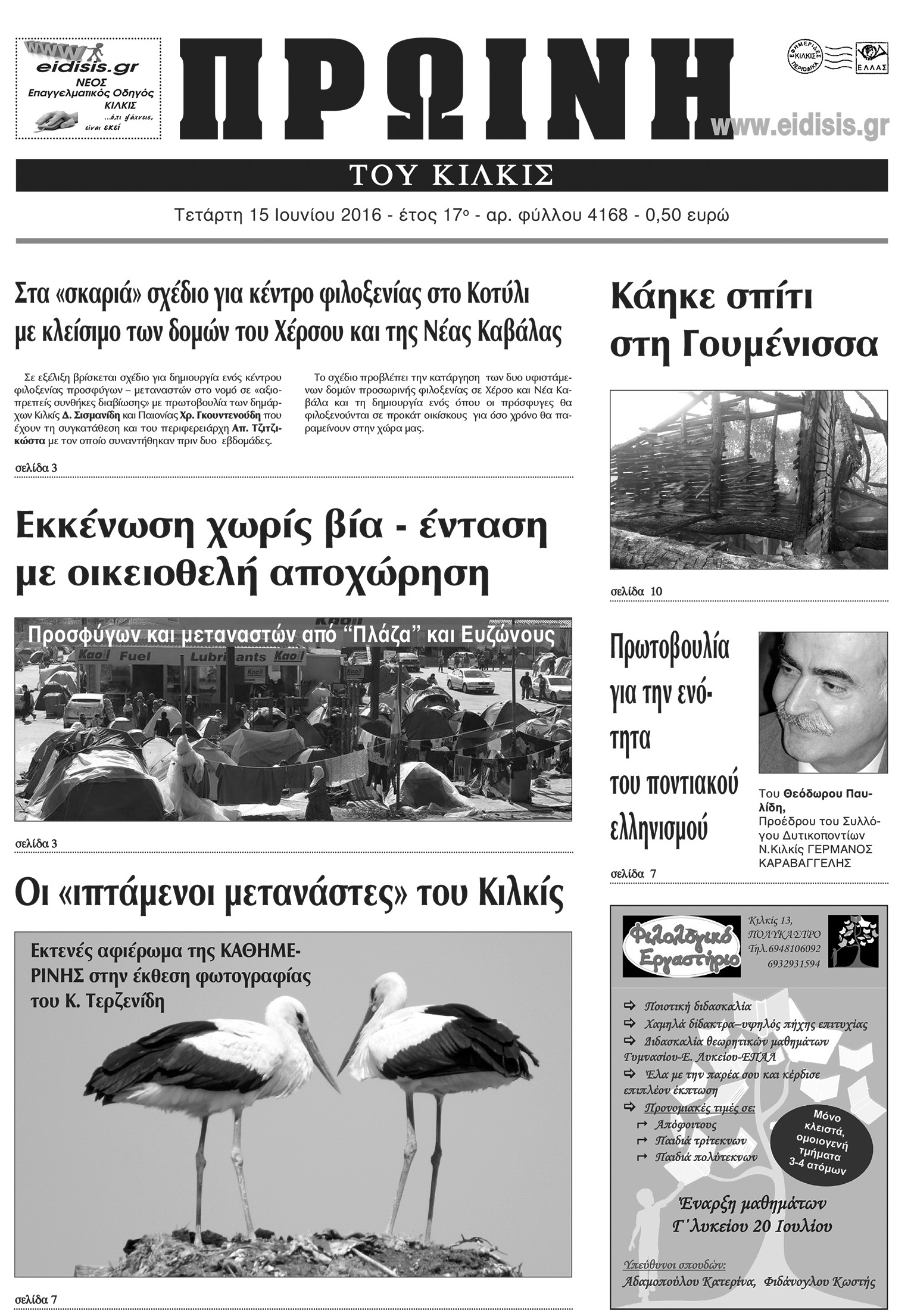 Πέντε χρόνια πριν. Διαβάστε τι έγραφε η καθημερινή εφημερίδα ΠΡΩΙΝΗ του Κιλκίς (15-6-2016)