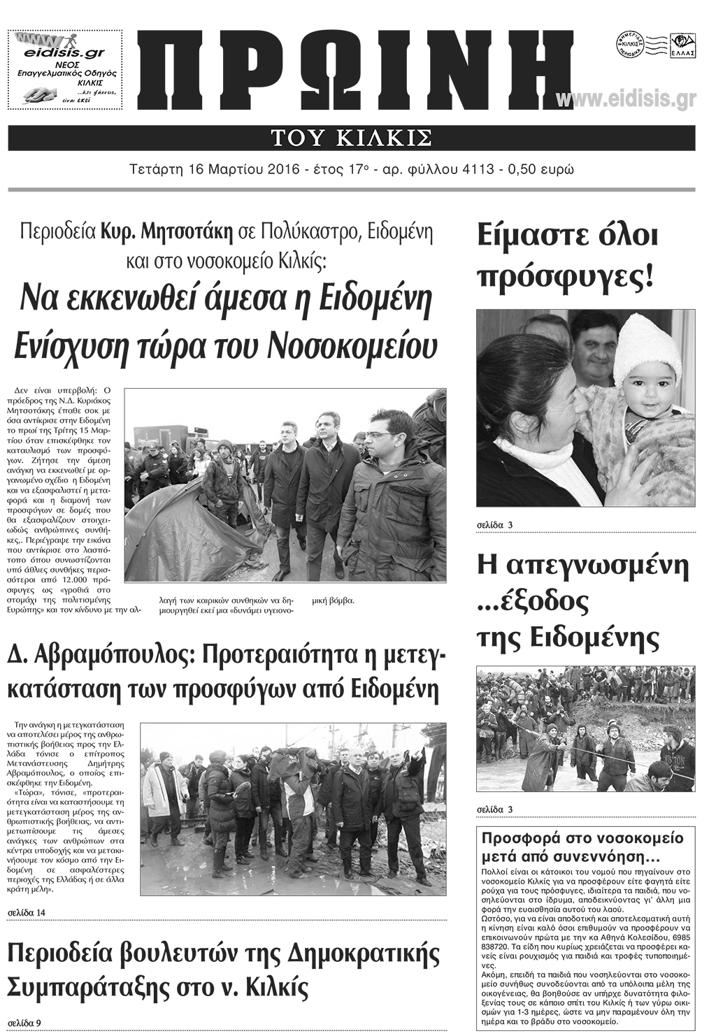Πέντε χρόνια πριν. Διαβάστε τι έγραφε η καθημερινή εφημερίδα ΠΡΩΙΝΗ του Κιλκίς (16-3-2016)