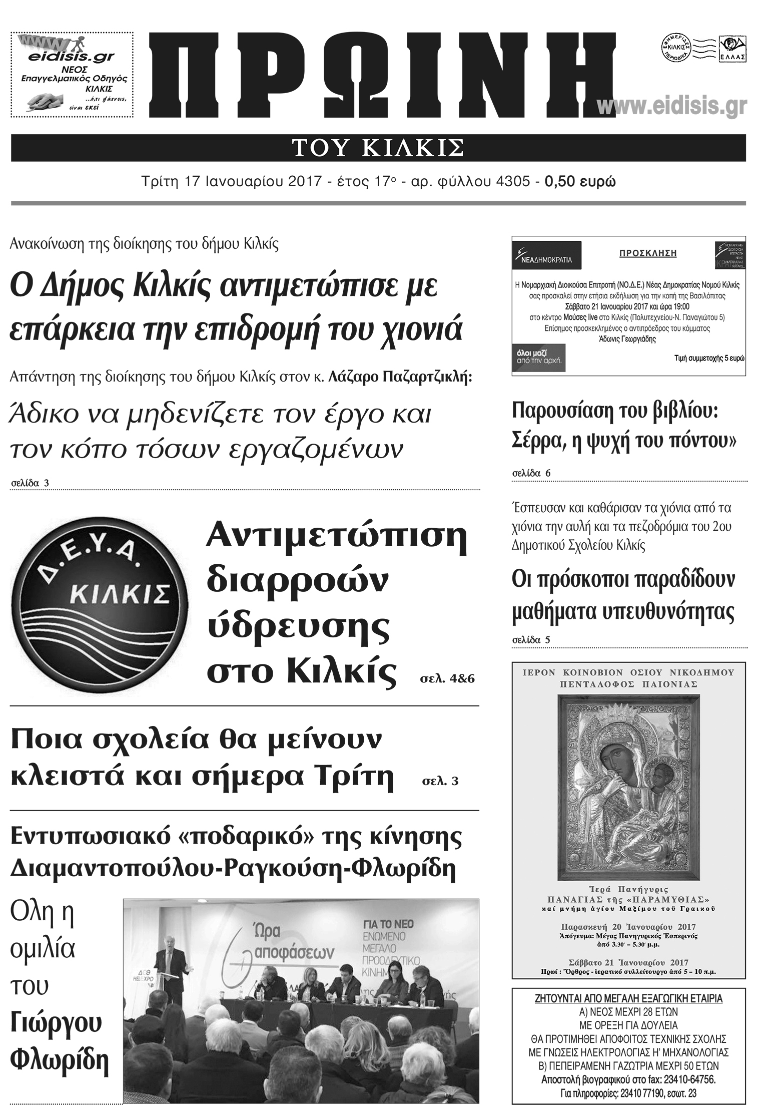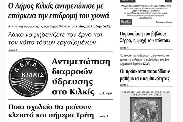 Πέντε χρόνια πριν. Διαβάστε τι έγραφε η καθημερινή εφημερίδα ΠΡΩΙΝΗ του Κιλκίς (17-1-2017)