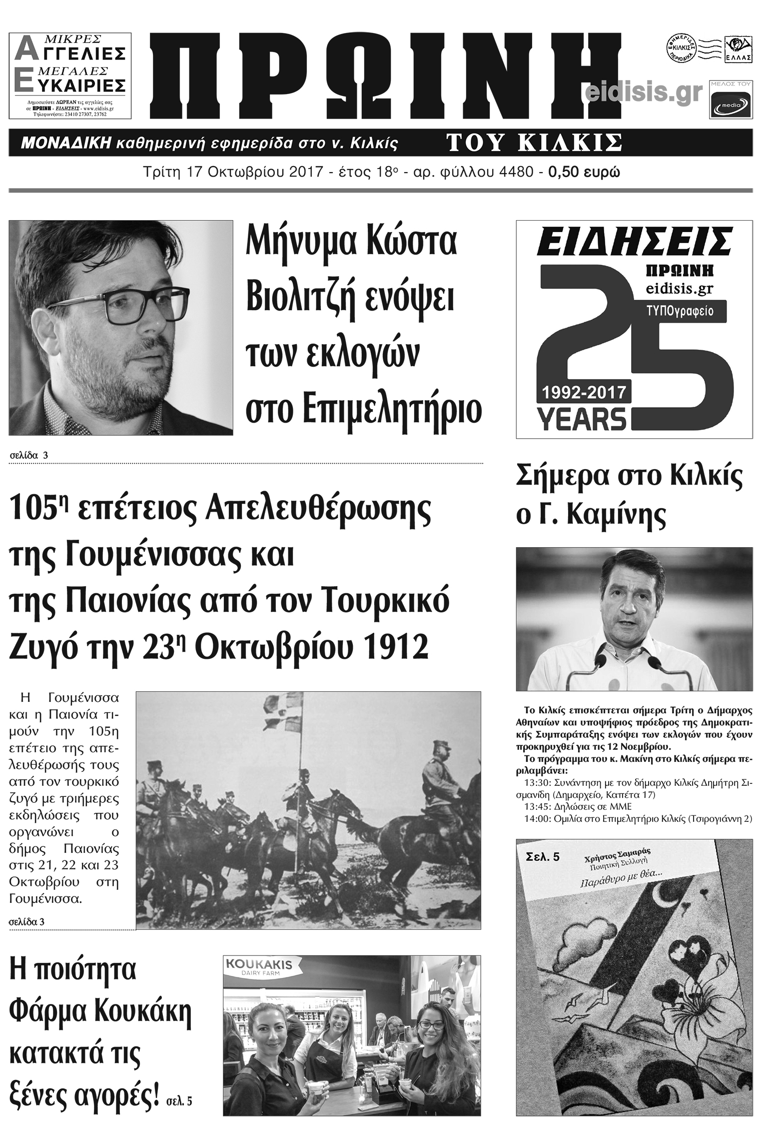Πέντε χρόνια πριν. Διαβάστε τι έγραφε η καθημερινή εφημερίδα ΠΡΩΙΝΗ του Κιλκίς (17-10-2017)