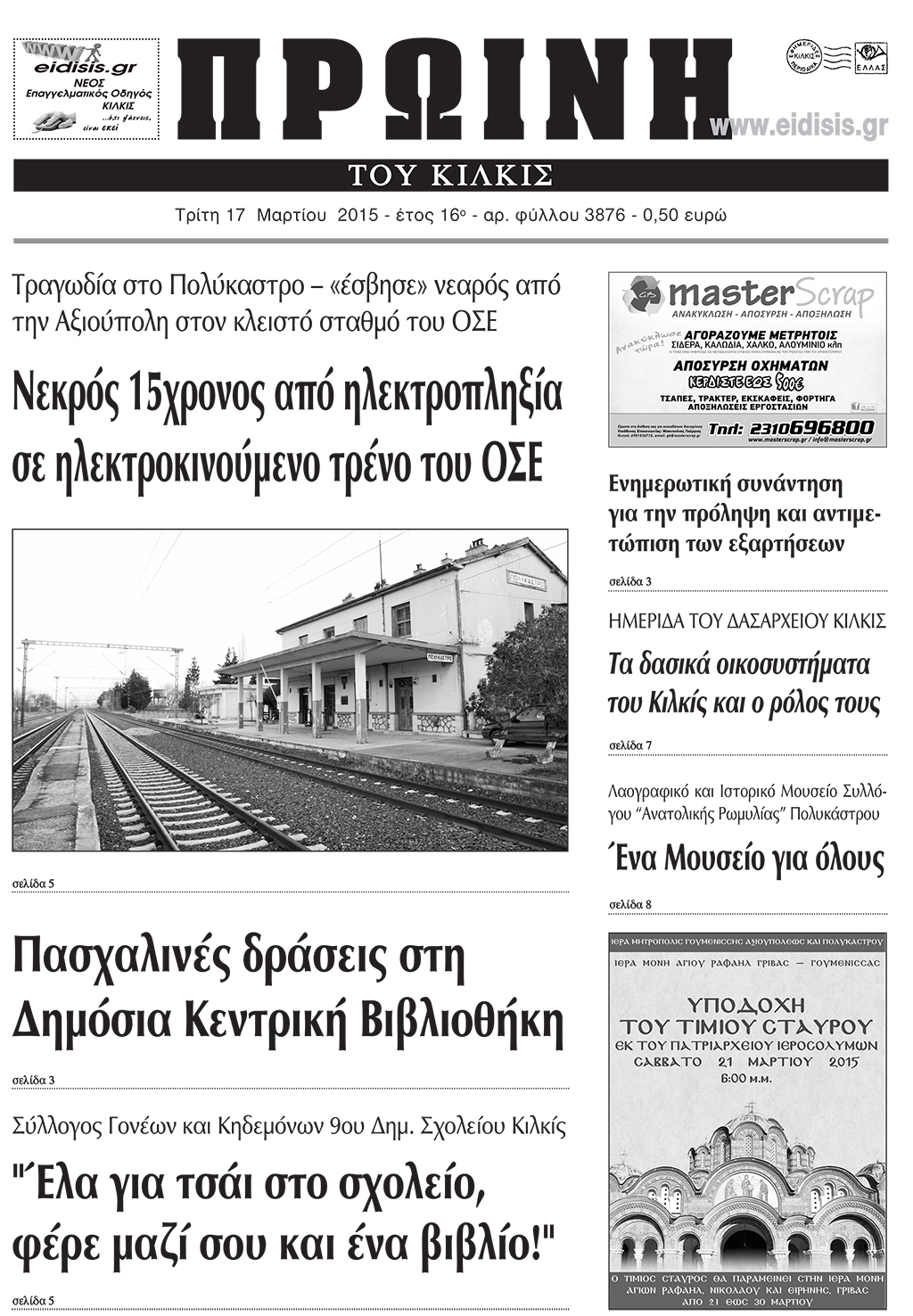 Πέντε χρόνια πριν. Διαβάστε τι έγραφε η καθημερινή εφημερίδα ΠΡΩΙΝΗ του Κιλκίς (17-3-2020)