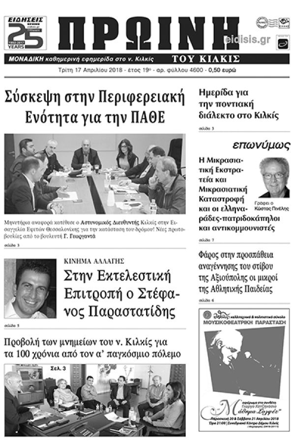 Πέντε χρόνια πριν. Διαβάστε τι έγραφε η καθημερινή εφημερίδα ΠΡΩΙΝΗ του Κιλκίς (17-4-2018)
