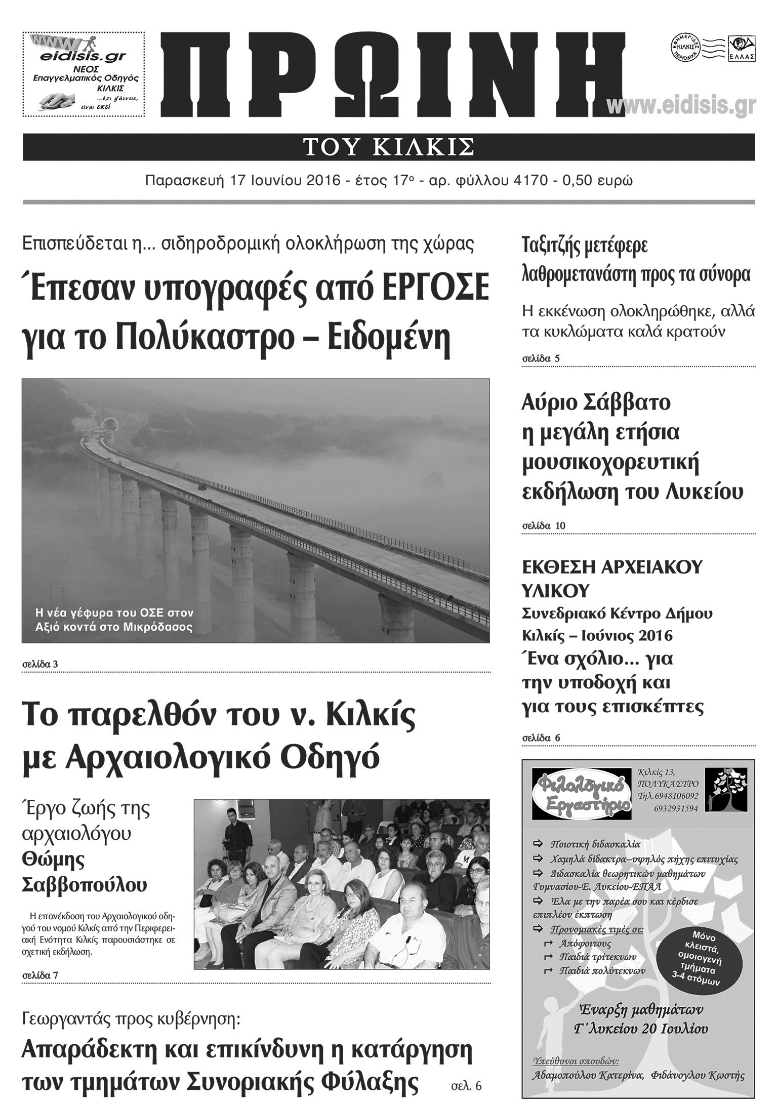 Πέντε χρόνια πριν. Διαβάστε τι έγραφε η καθημερινή εφημερίδα ΠΡΩΙΝΗ του Κιλκίς (17-6-2016)