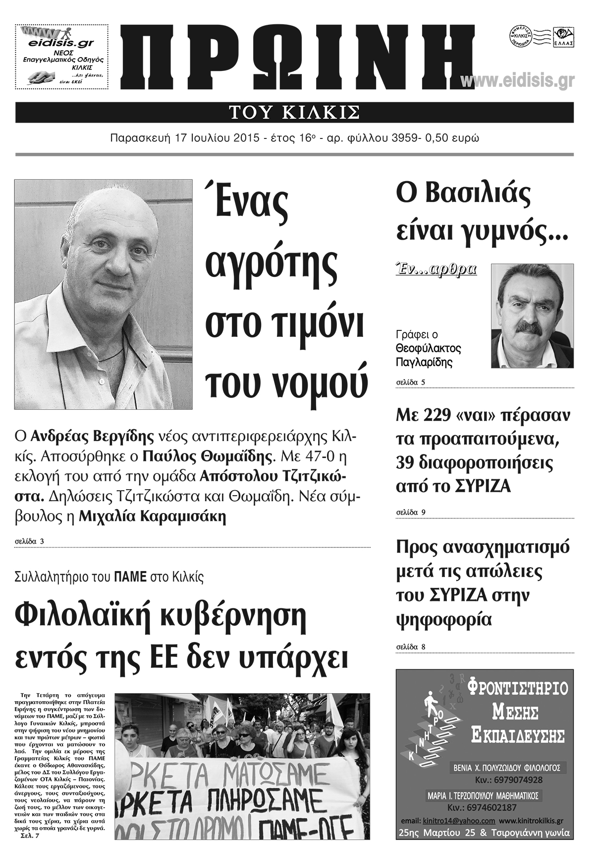 Πέντε χρόνια πριν. Διαβάστε τι έγραφε η καθημερινή εφημερίδα ΠΡΩΙΝΗ του Κιλκίς (17-7-2015)