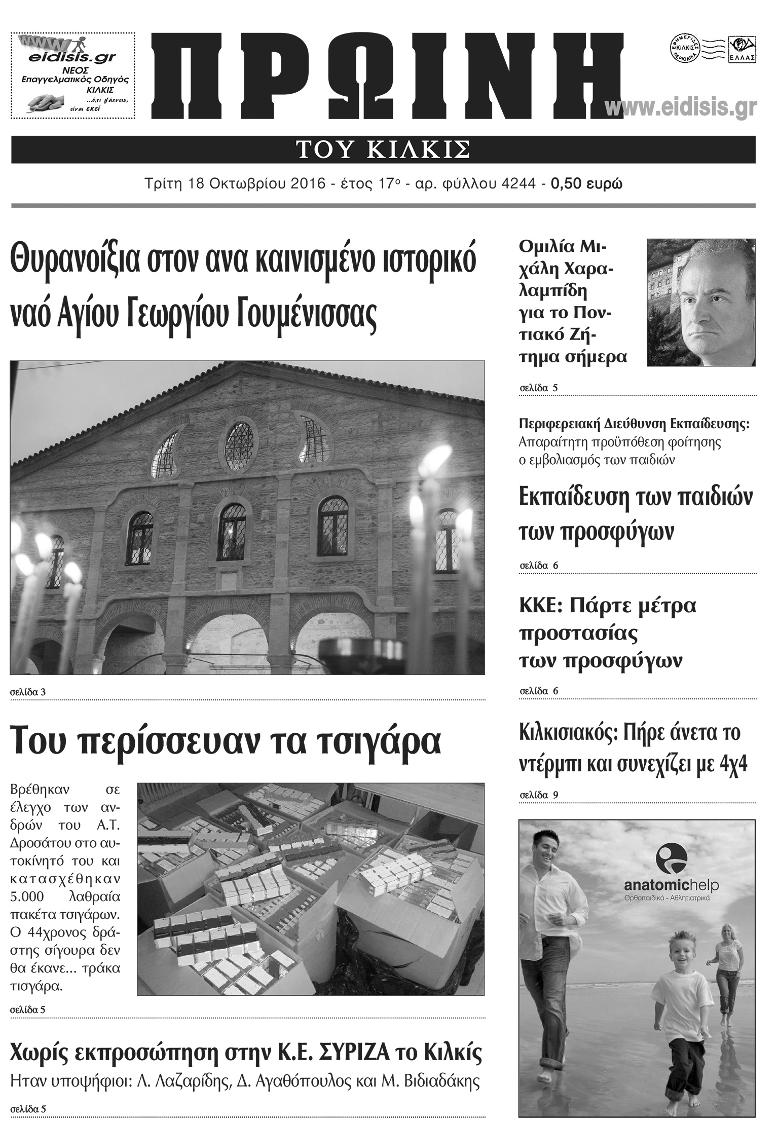 Πέντε χρόνια πριν. Διαβάστε τι έγραφε η καθημερινή εφημερίδα ΠΡΩΙΝΗ του Κιλκίς (18-10-2016)