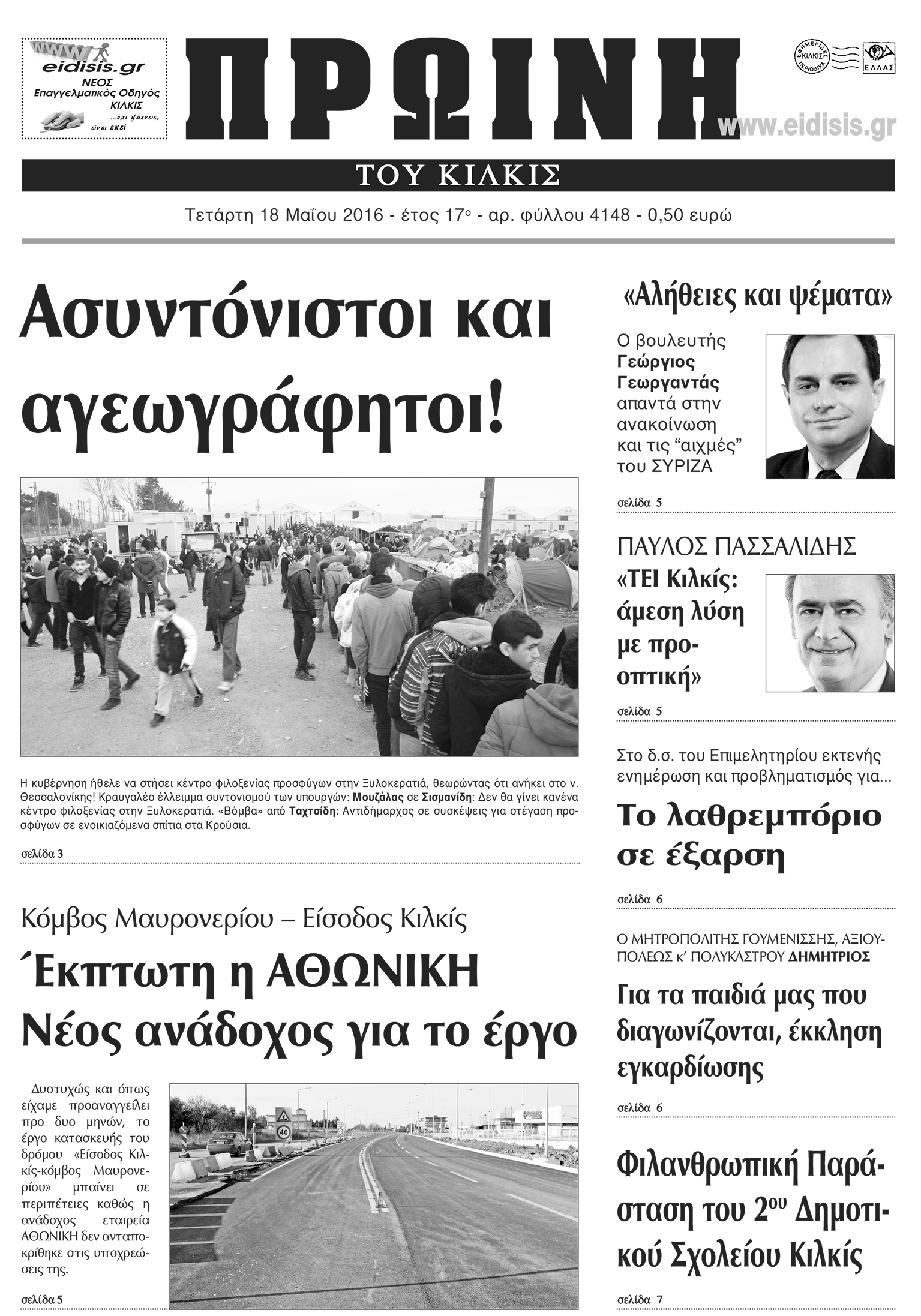 Πέντε χρόνια πριν. Διαβάστε τι έγραφε η καθημερινή εφημερίδα ΠΡΩΙΝΗ του Κιλκίς (18-5-2016)