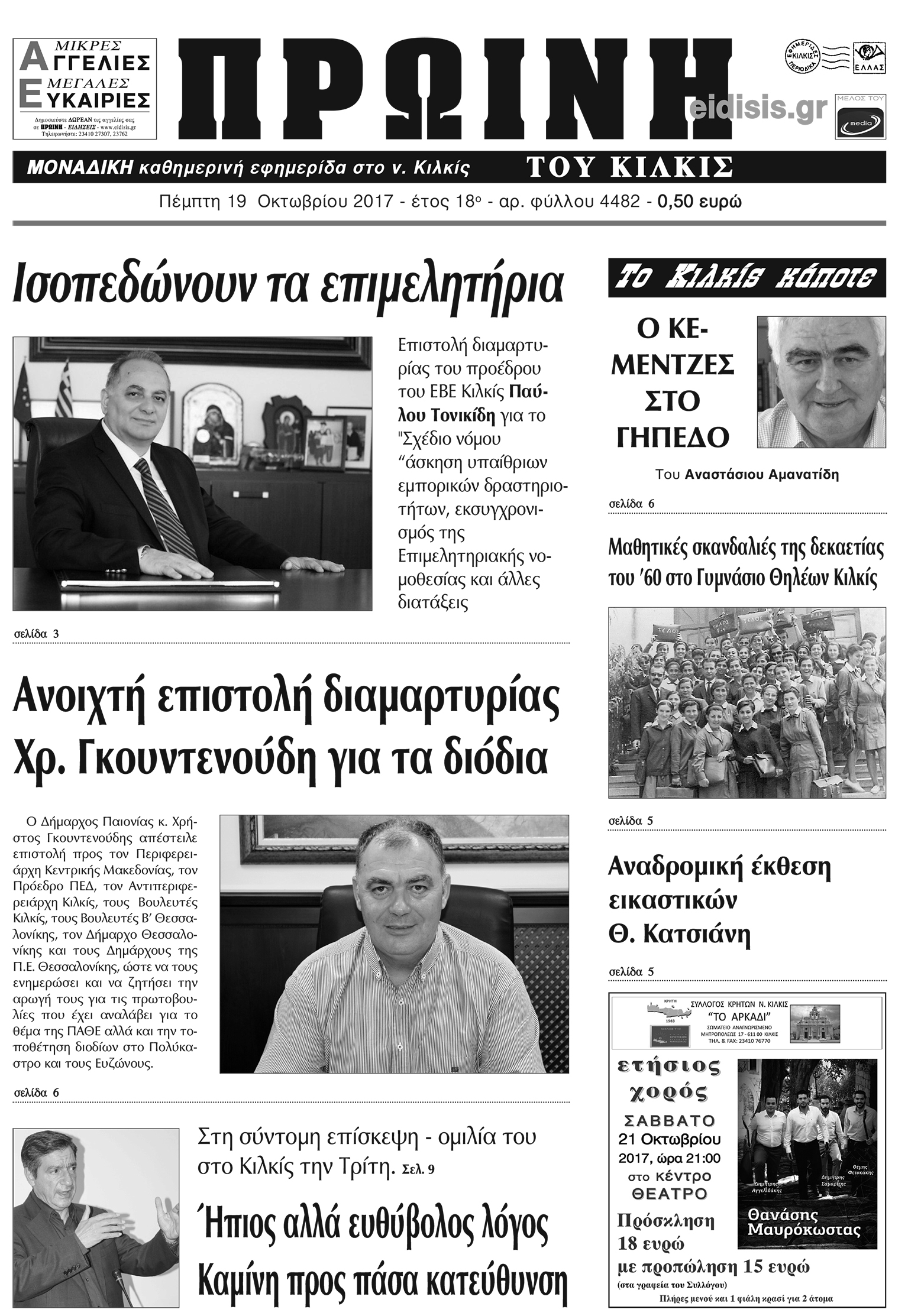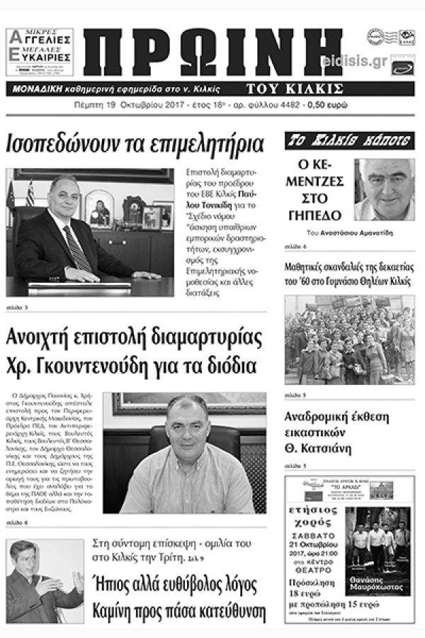 Πέντε χρόνια πριν. Διαβάστε τι έγραφε η καθημερινή εφημερίδα ΠΡΩΙΝΗ του Κιλκίς (19-10-2017)