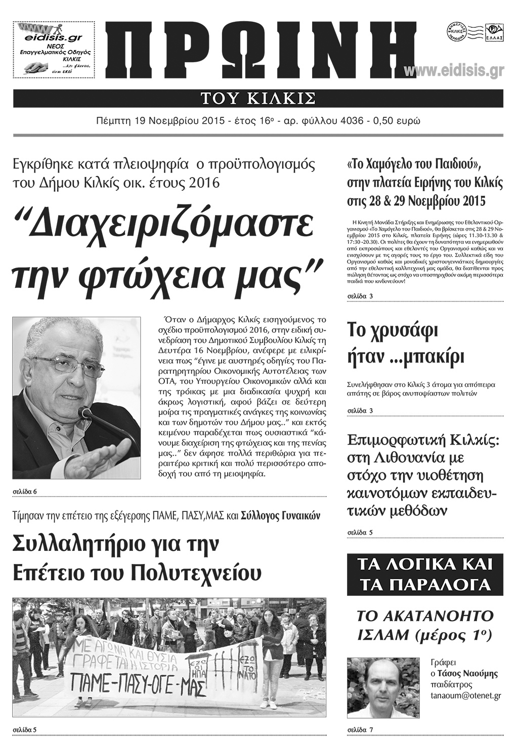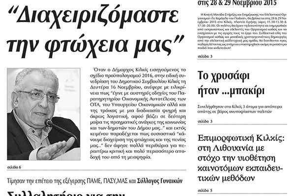 Πέντε χρόνια πριν. Διαβάστε τι έγραφε η καθημερινή εφημερίδα ΠΡΩΙΝΗ του Κιλκίς (19-11-2015)