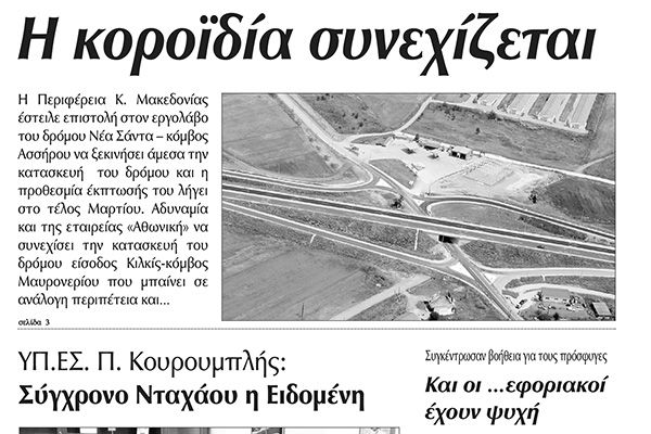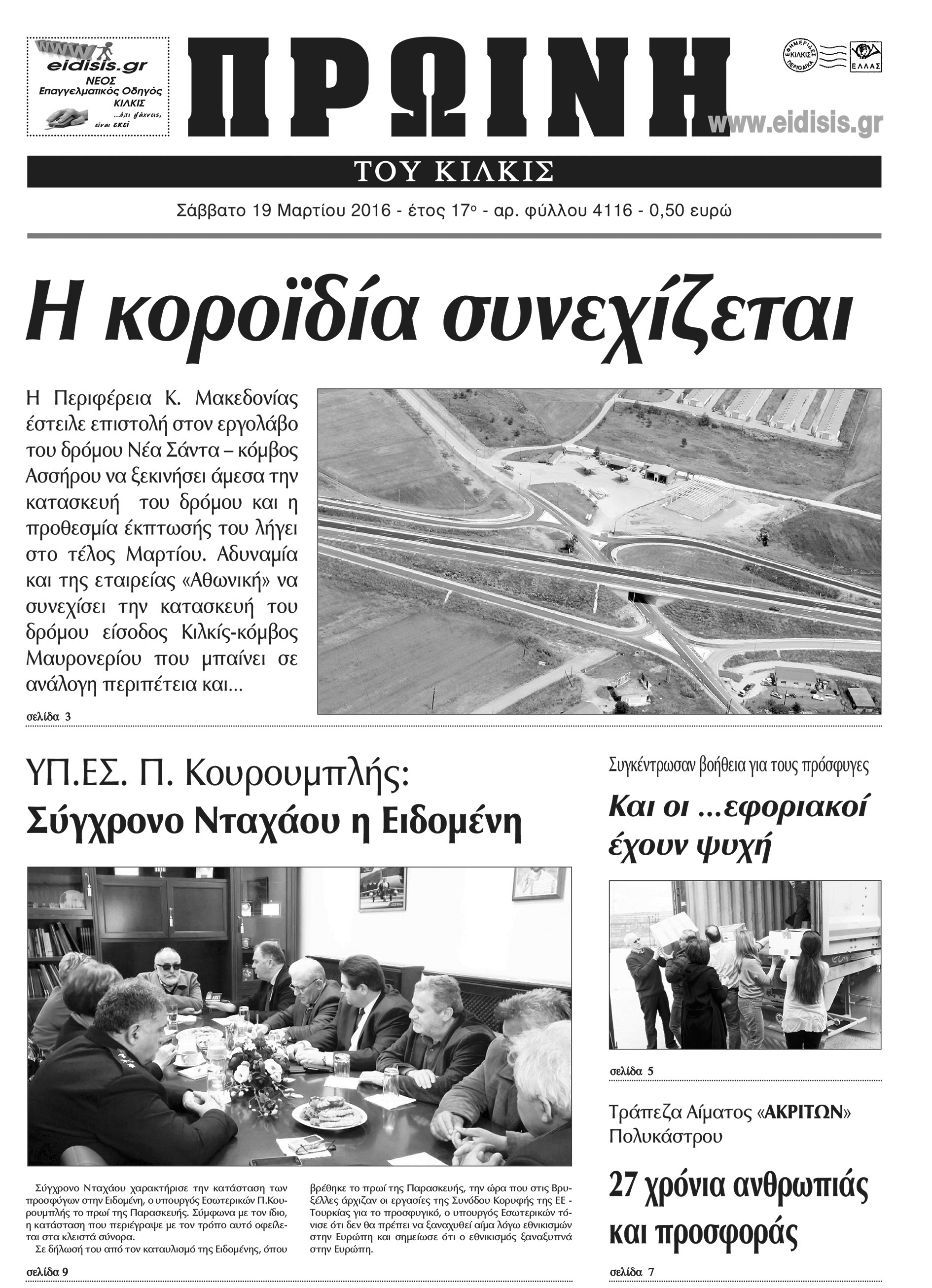 Πέντε χρόνια πριν. Διαβάστε τι έγραφε η καθημερινή εφημερίδα ΠΡΩΙΝΗ του Κιλκίς (19-3-2016)