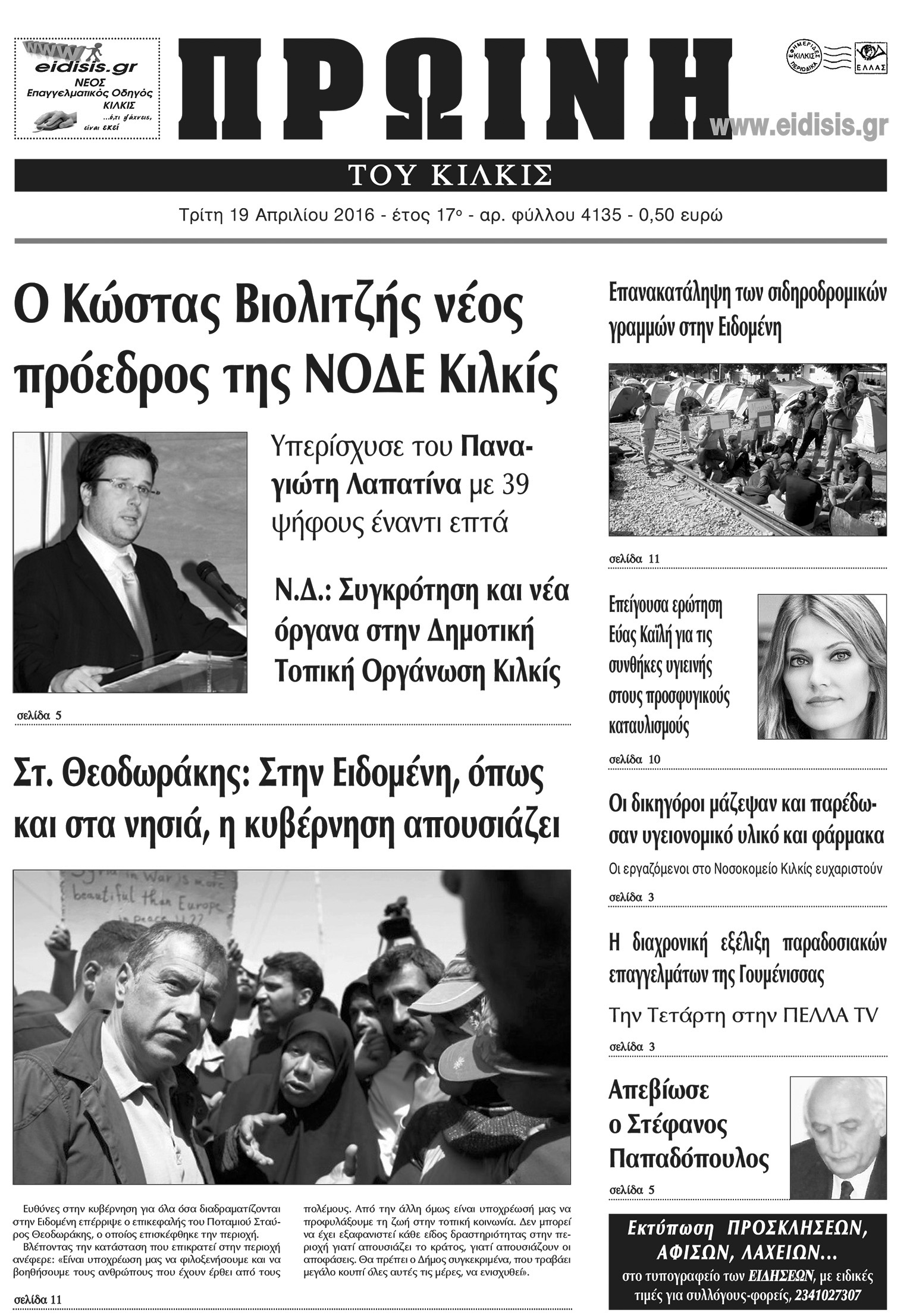 Πέντε χρόνια πριν. Διαβάστε τι έγραφε η καθημερινή εφημερίδα ΠΡΩΙΝΗ του Κιλκίς (19-4-2016)