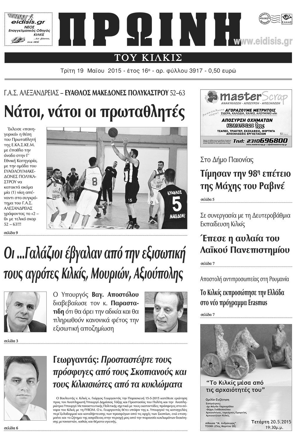 Πέντε χρόνια πριν. Διαβάστε τι έγραφε η καθημερινή εφημερίδα ΠΡΩΙΝΗ του Κιλκίς (19-5-2015)
