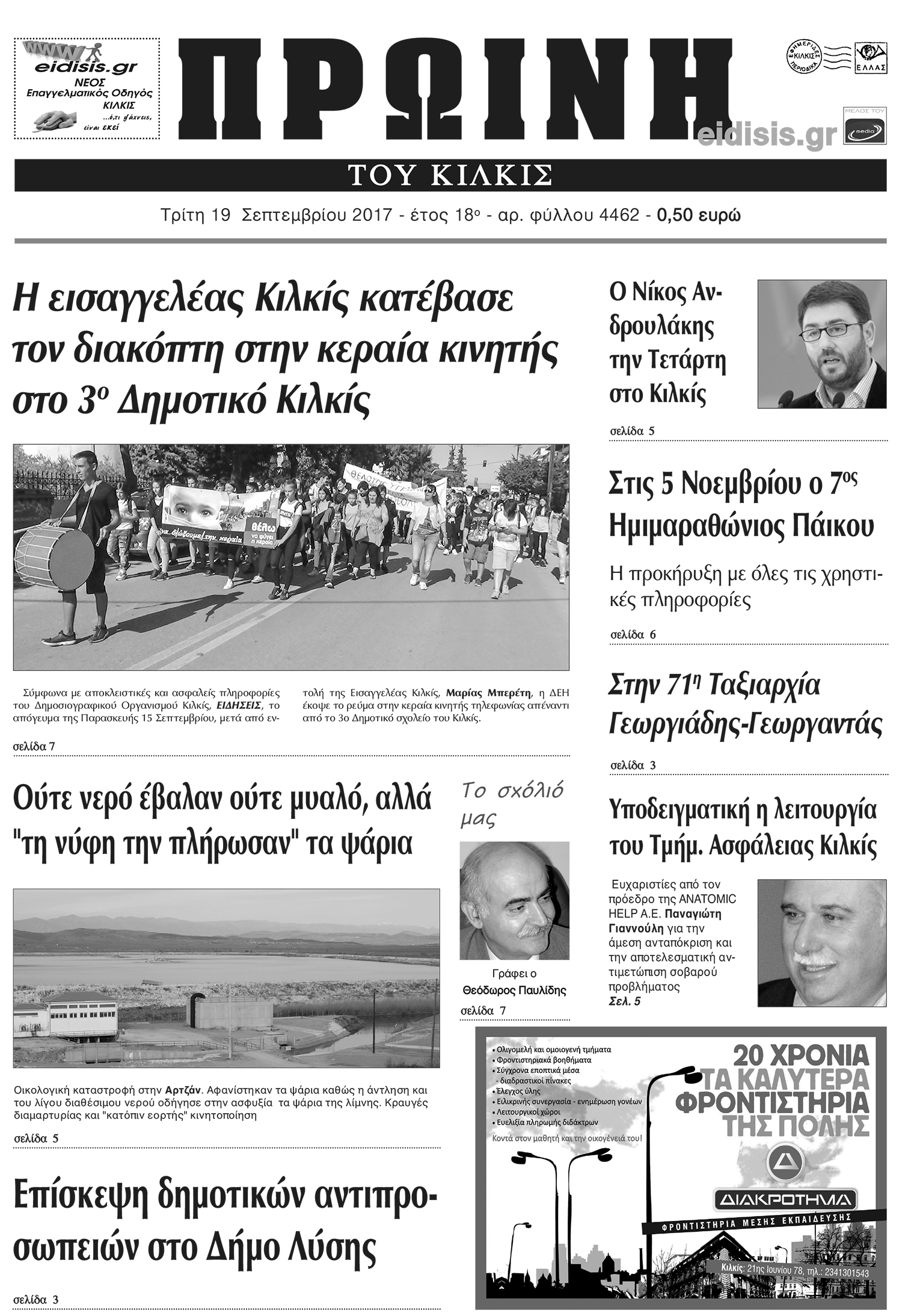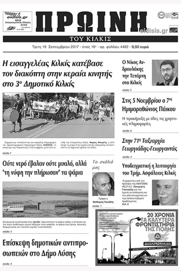 Πέντε χρόνια πριν. Διαβάστε τι έγραφε η καθημερινή εφημερίδα ΠΡΩΙΝΗ του Κιλκίς (19-9-2017)