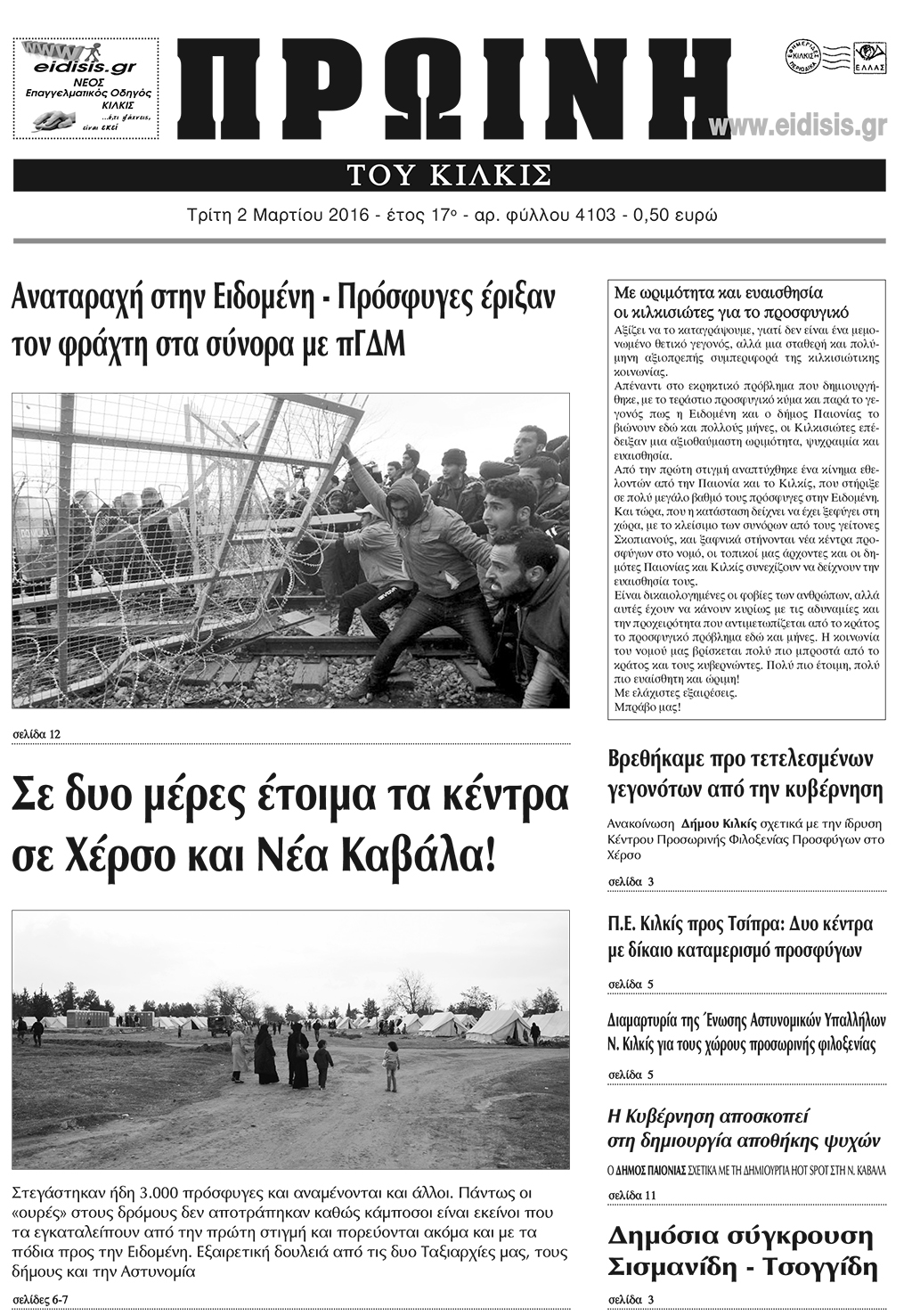 Πέντε χρόνια πριν. Διαβάστε τι έγραφε η καθημερινή εφημερίδα ΠΡΩΙΝΗ του Κιλκίς (2-3-2016)