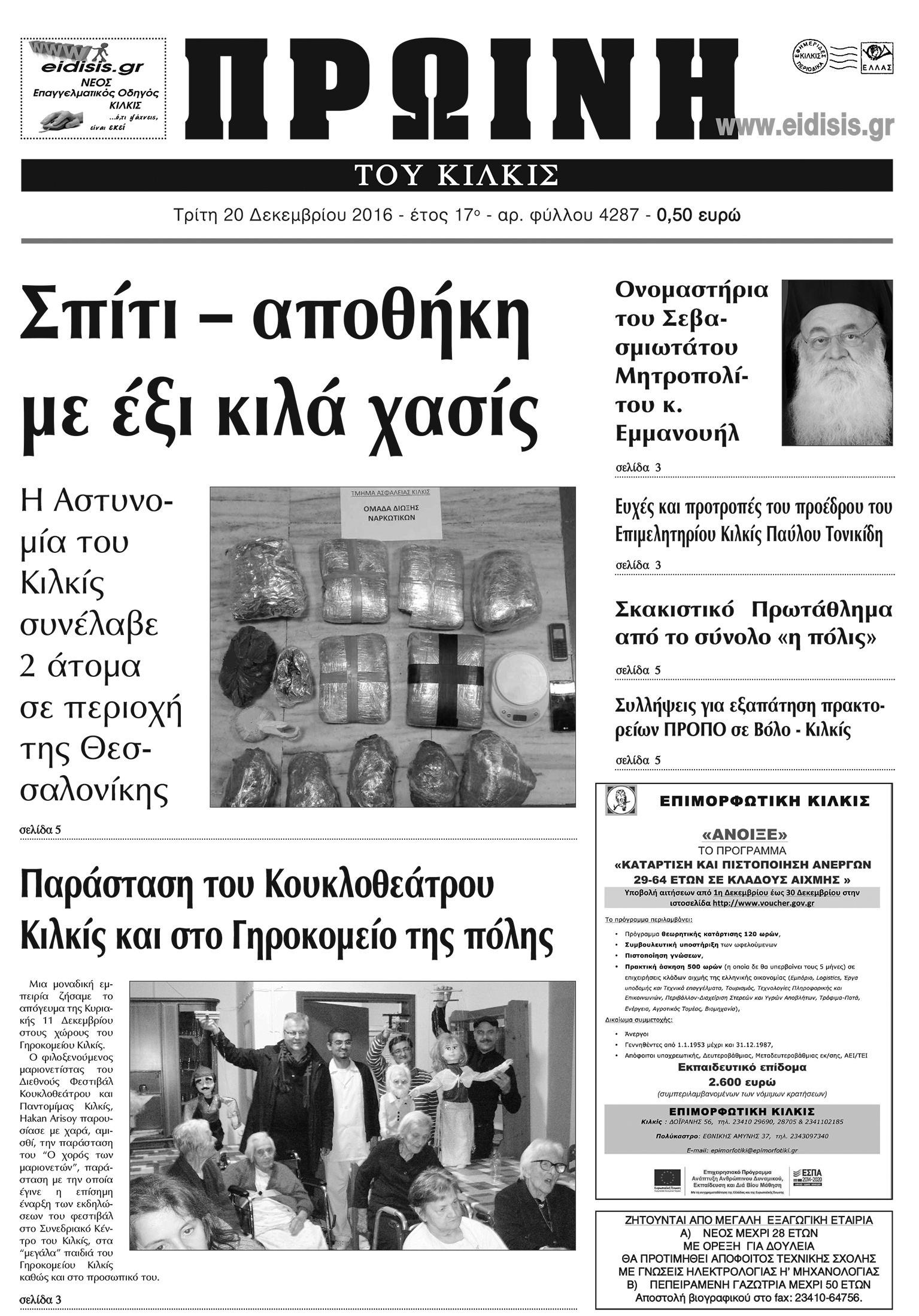 Πέντε χρόνια πριν. Διαβάστε τι έγραφε η καθημερινή εφημερίδα ΠΡΩΙΝΗ του Κιλκίς (20-12-2016)
