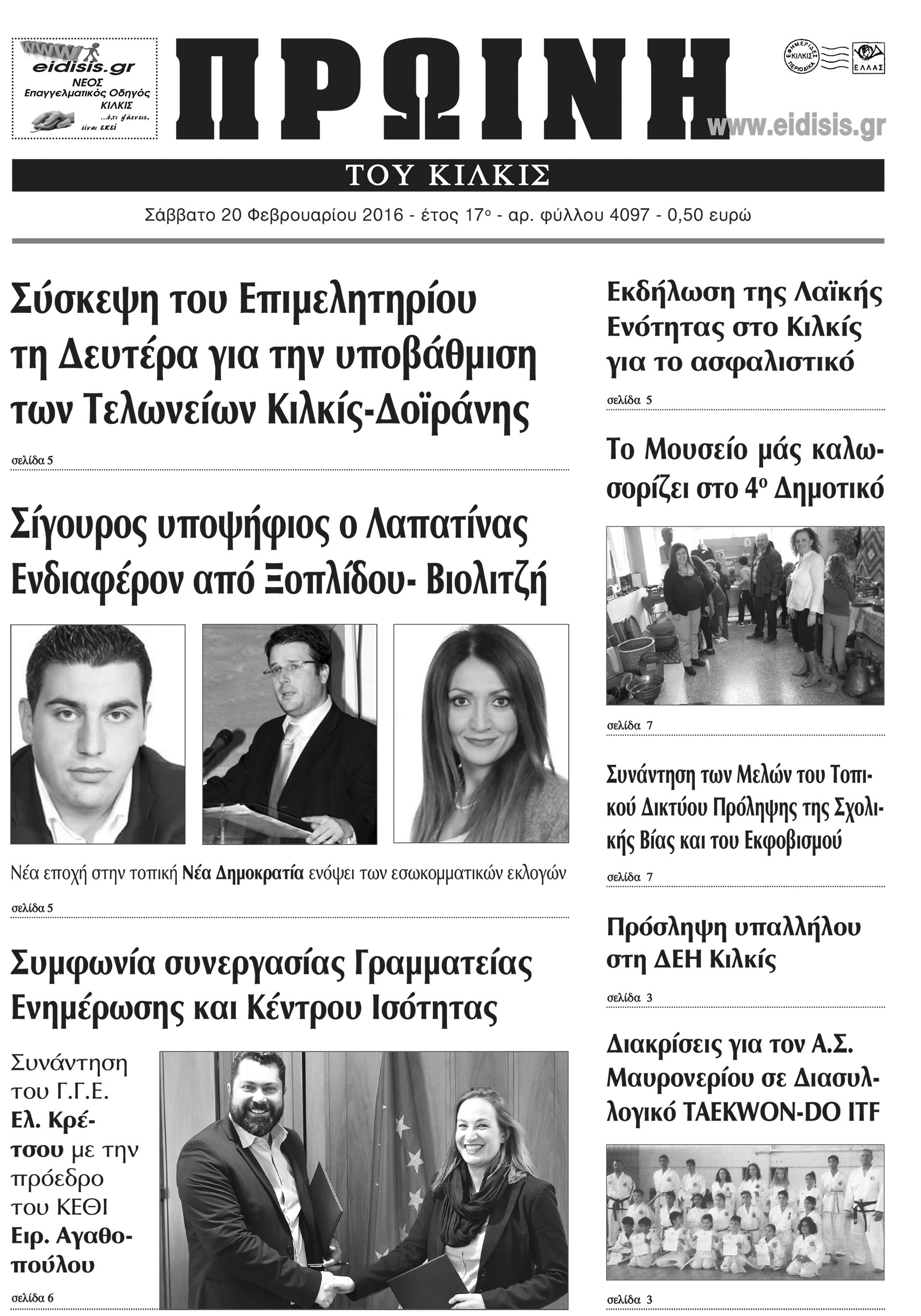 Πέντε χρόνια πριν. Διαβάστε τι έγραφε η καθημερινή εφημερίδα ΠΡΩΙΝΗ του Κιλκίς (20-2-2016)