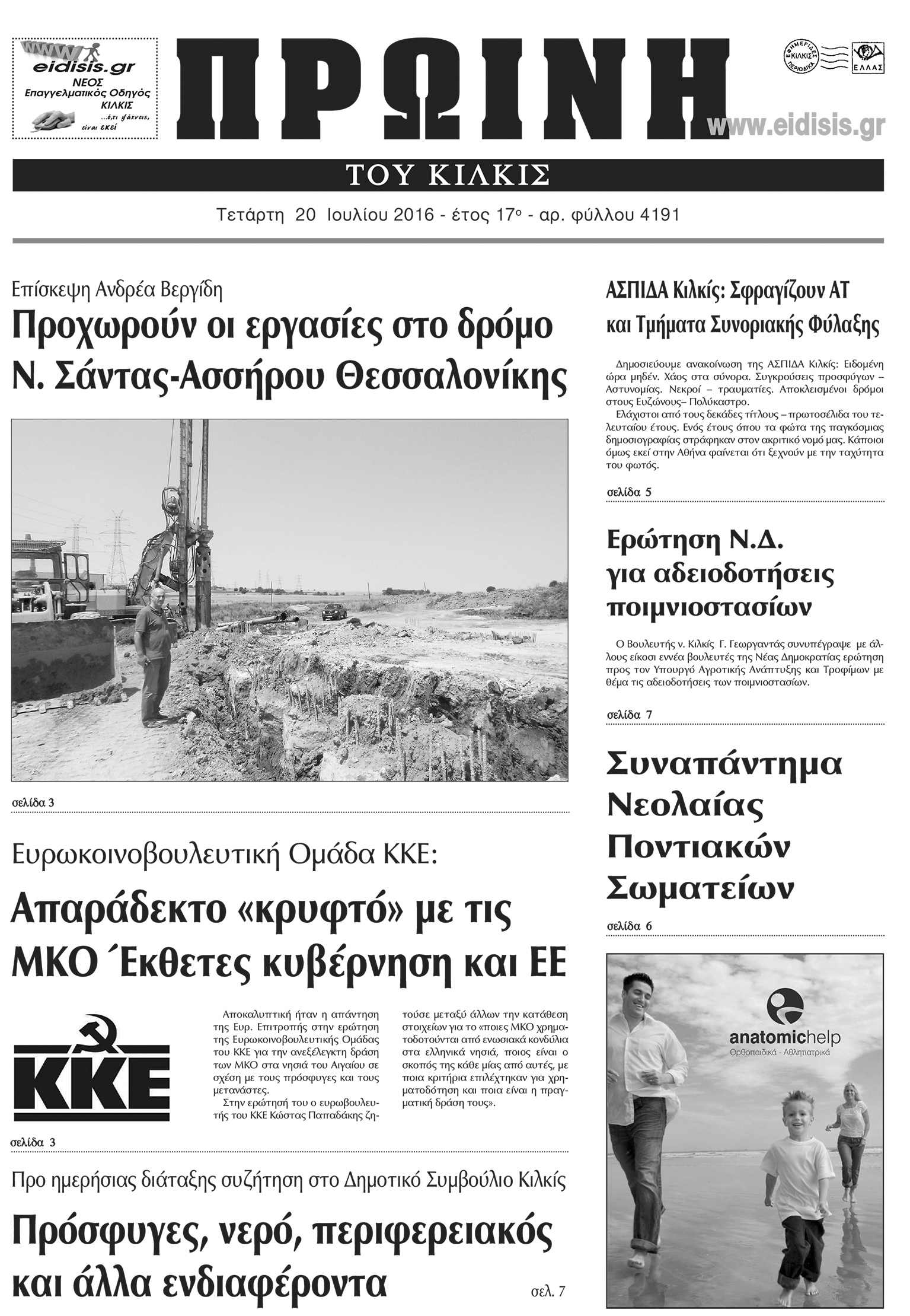Πέντε χρόνια πριν. Διαβάστε τι έγραφε η καθημερινή εφημερίδα ΠΡΩΙΝΗ του Κιλκίς (20-7-2016)
