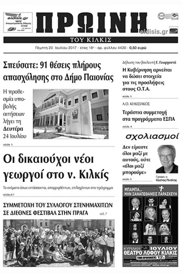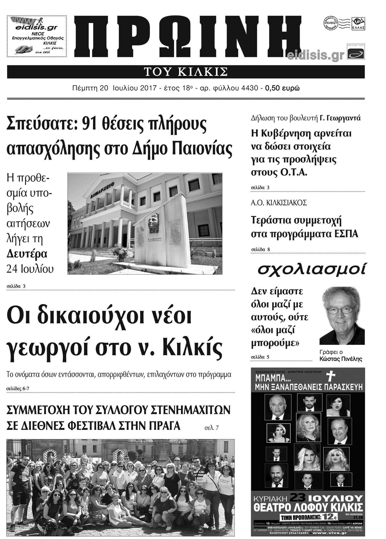 Πέντε χρόνια πριν. Διαβάστε τι έγραφε η καθημερινή εφημερίδα ΠΡΩΙΝΗ του Κιλκίς (20-7-2017)