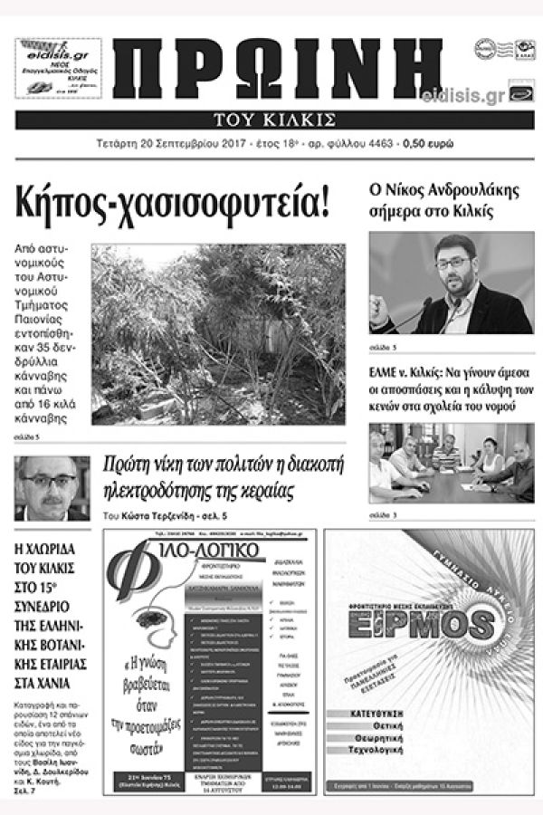 Πέντε χρόνια πριν. Διαβάστε τι έγραφε η καθημερινή εφημερίδα ΠΡΩΙΝΗ του Κιλκίς (20-9-2017)