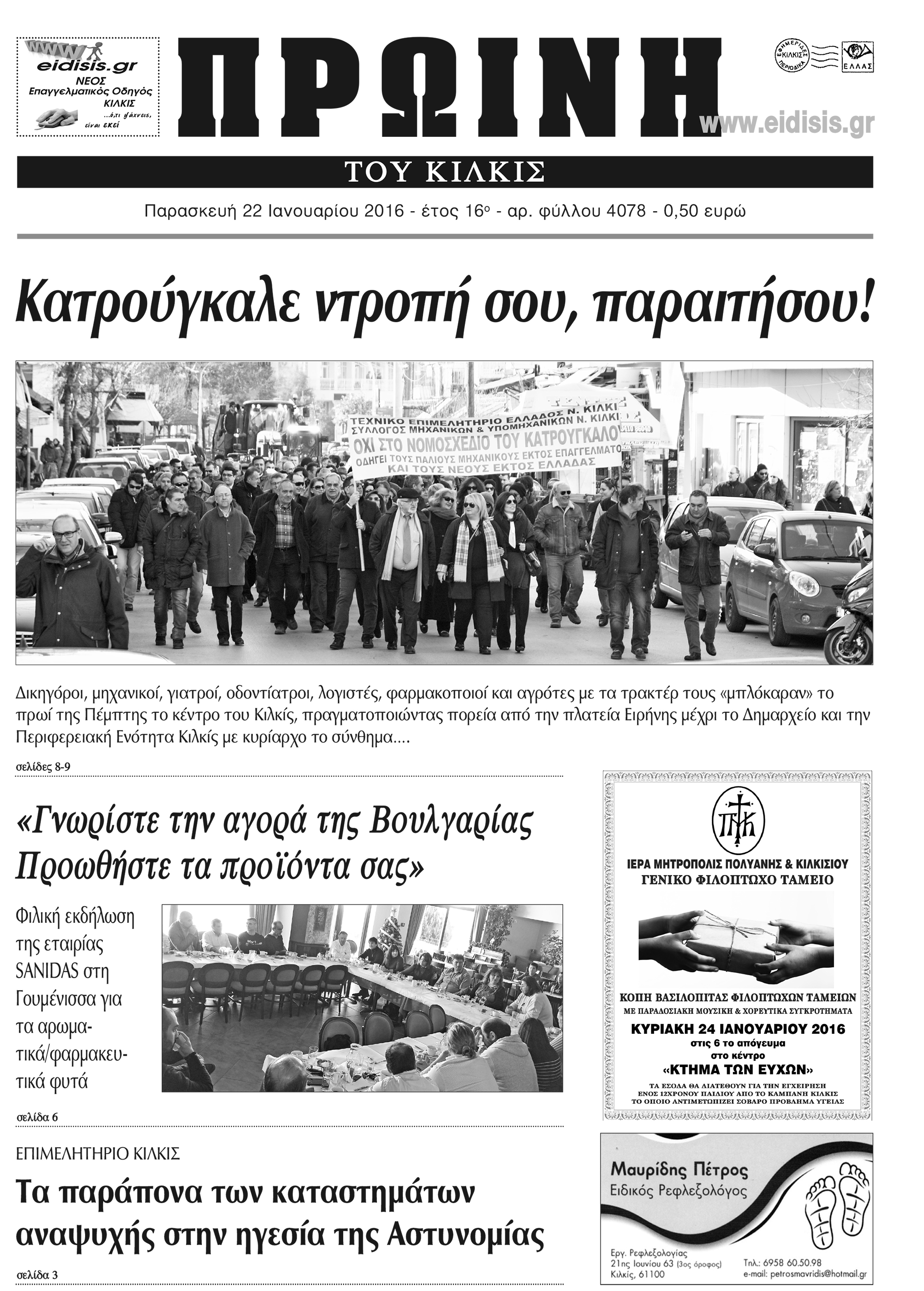 Πέντε χρόνια πριν. Διαβάστε τι έγραφε η καθημερινή εφημερίδα ΠΡΩΙΝΗ του Κιλκίς (22-1-2016)