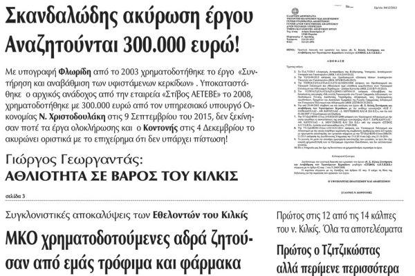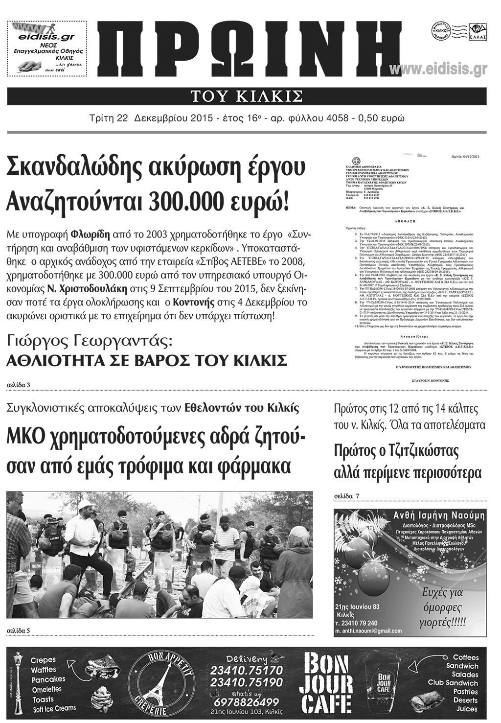 Πέντε χρόνια πριν. Διαβάστε τι έγραφε η καθημερινή εφημερίδα ΠΡΩΙΝΗ του Κιλκίς (22-12-2015)