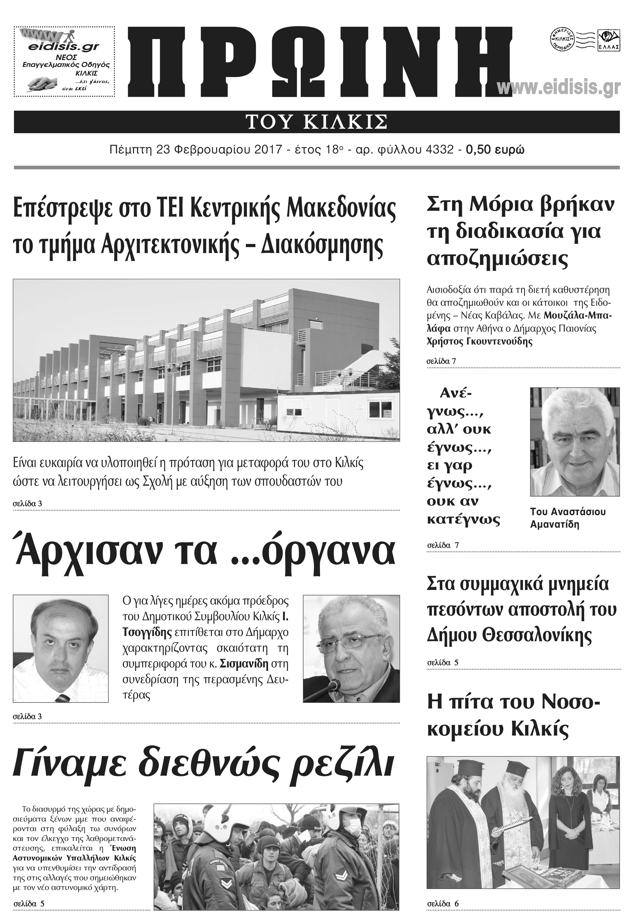 Πέντε χρόνια πριν. Διαβάστε τι έγραφε η καθημερινή εφημερίδα ΠΡΩΙΝΗ του Κιλκίς (23-2-2017)