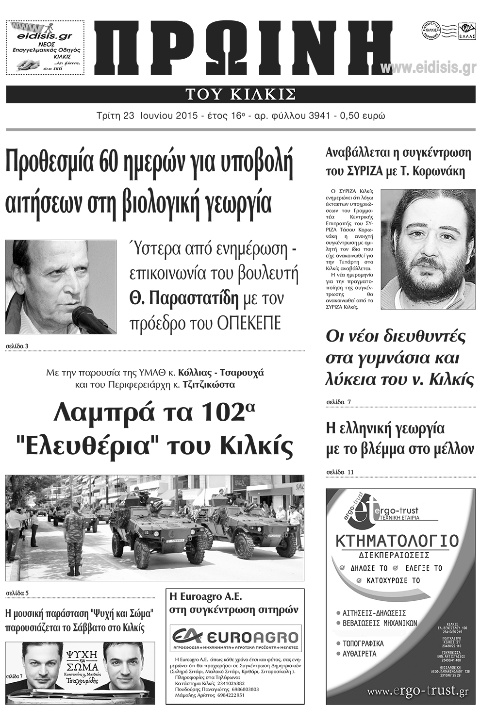 Πέντε χρόνια πριν. Διαβάστε τι έγραφε η καθημερινή εφημερίδα ΠΡΩΙΝΗ του Κιλκίς (23-6-2015)