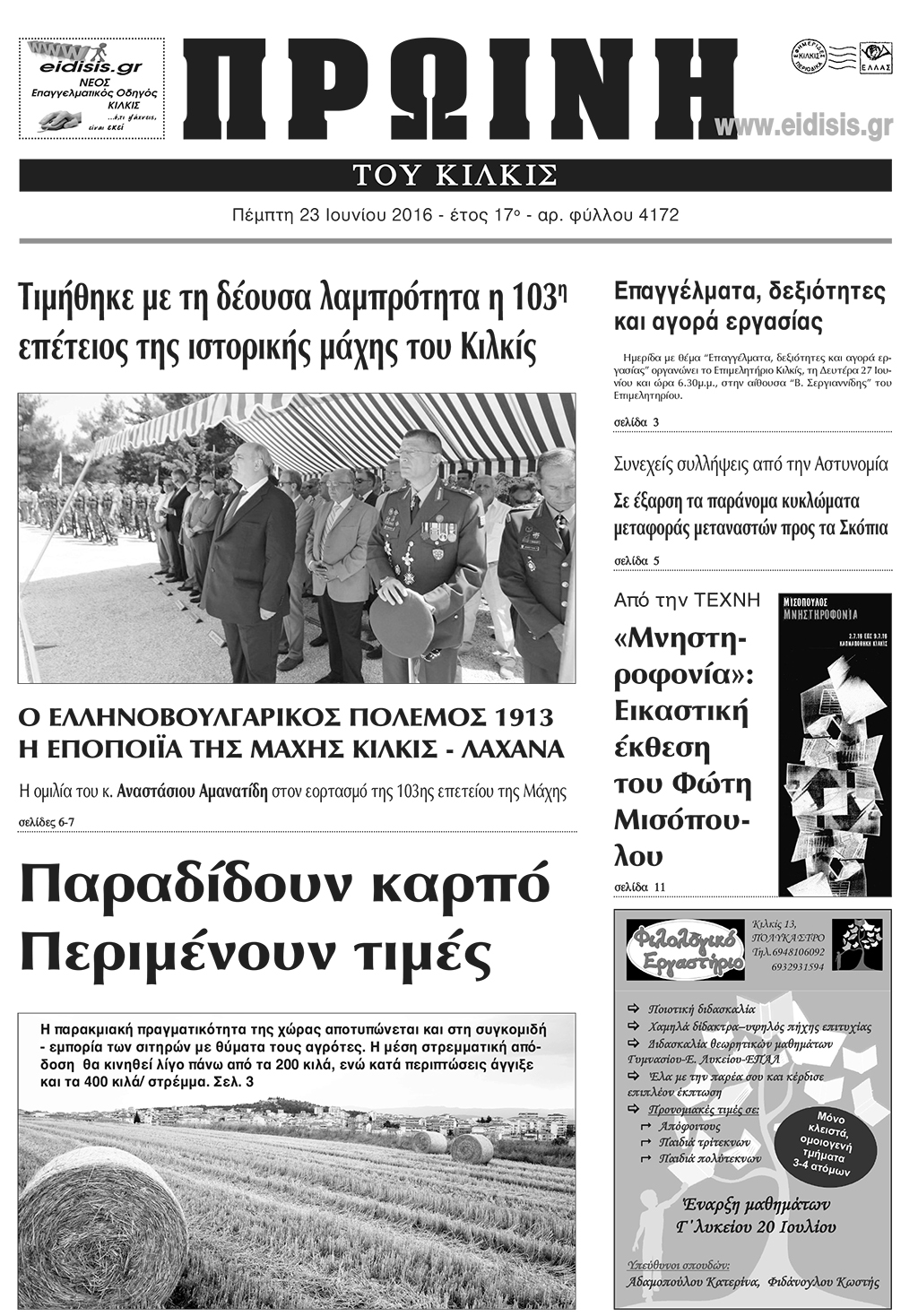 Πέντε χρόνια πριν. Διαβάστε τι έγραφε η καθημερινή εφημερίδα ΠΡΩΙΝΗ του Κιλκίς (23-6-2016)