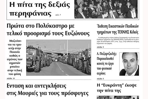 Πέντε χρόνια πριν. Διαβάστε τι έγραφε η καθημερινή εφημερίδα ΠΡΩΙΝΗ του Κιλκίς (24-1-2017)