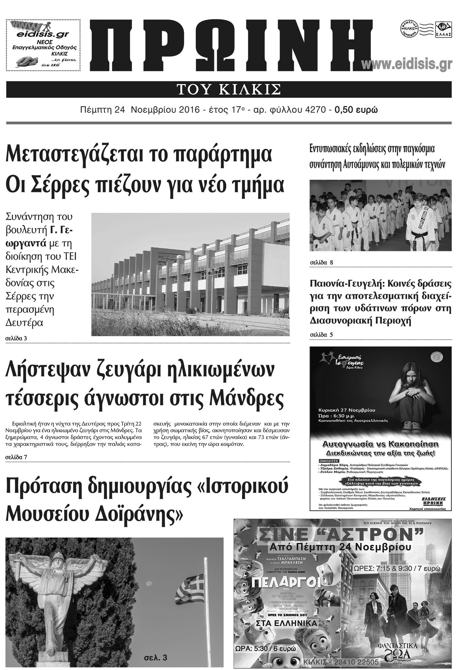 Πέντε χρόνια πριν. Διαβάστε τι έγραφε η καθημερινή εφημερίδα ΠΡΩΙΝΗ του Κιλκίς (24-11-2016)