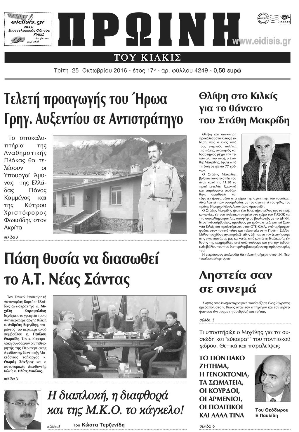 Πέντε χρόνια πριν. Διαβάστε τι έγραφε η καθημερινή εφημερίδα ΠΡΩΙΝΗ του Κιλκίς (25-10-2016)