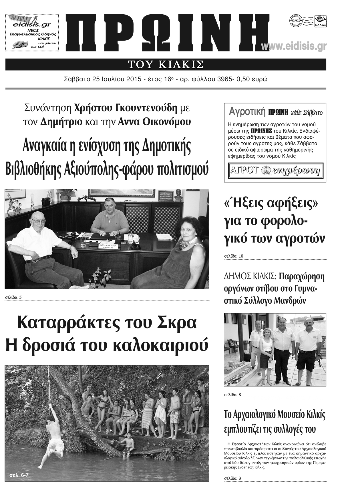 Πέντε χρόνια πριν. Διαβάστε τι έγραφε η καθημερινή εφημερίδα ΠΡΩΙΝΗ του Κιλκίς (25-7-2015)