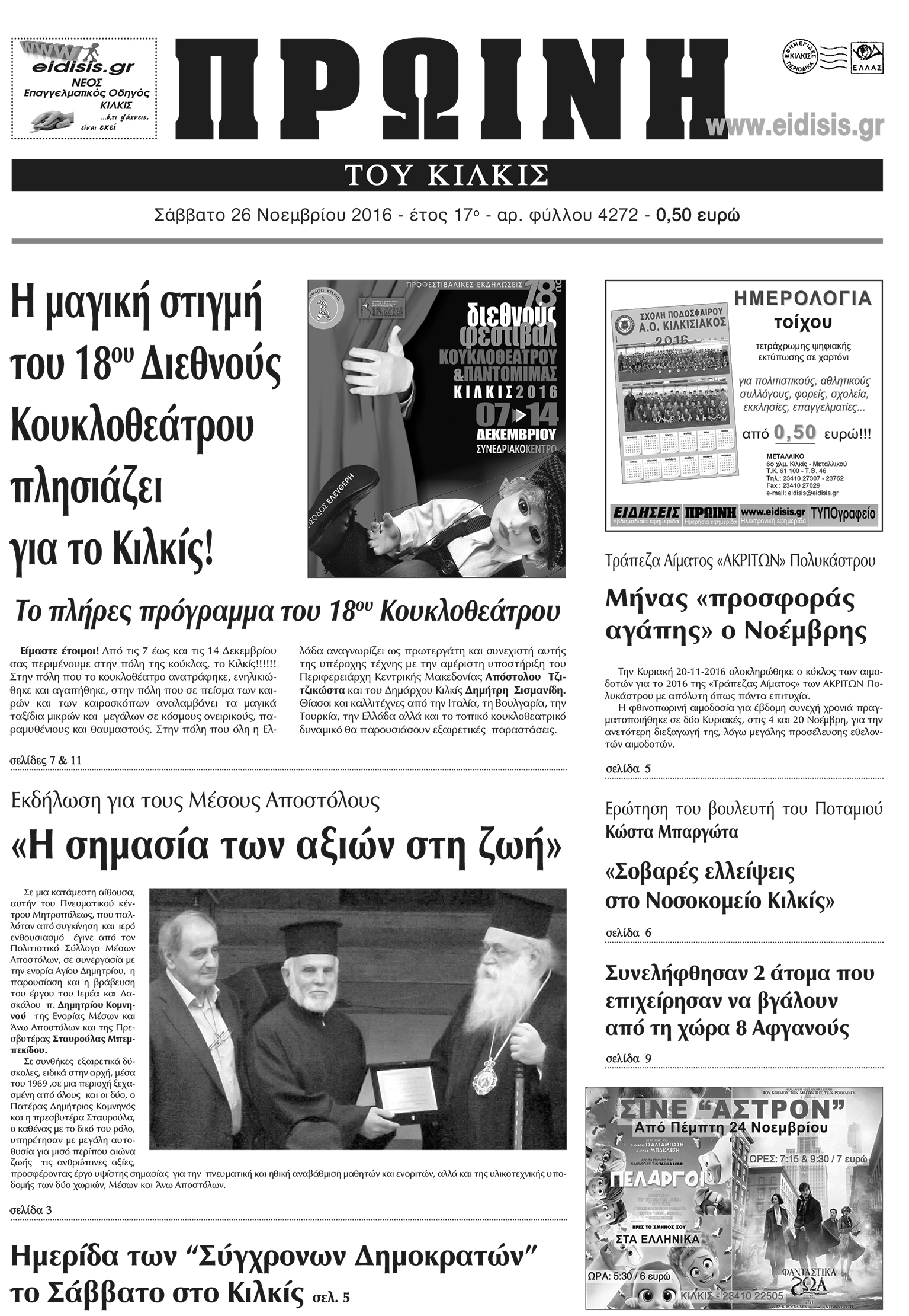 Πέντε χρόνια πριν. Διαβάστε τι έγραφε η καθημερινή εφημερίδα ΠΡΩΙΝΗ του Κιλκίς (26-11-2016)