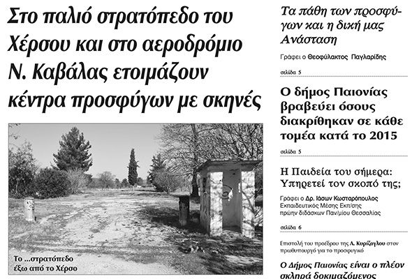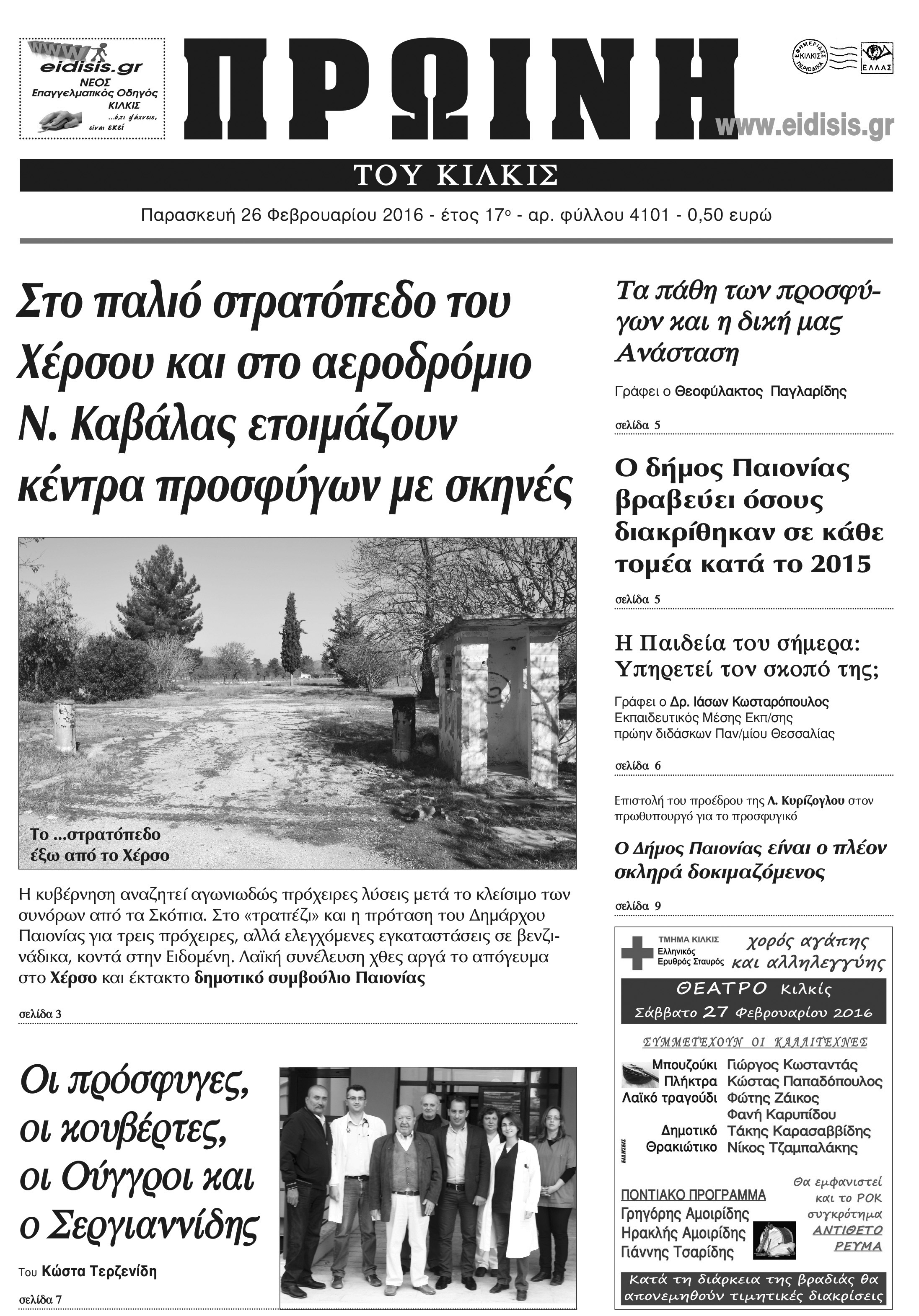 Πέντε χρόνια πριν. Διαβάστε τι έγραφε η καθημερινή εφημερίδα ΠΡΩΙΝΗ του Κιλκίς (26-2-2016)