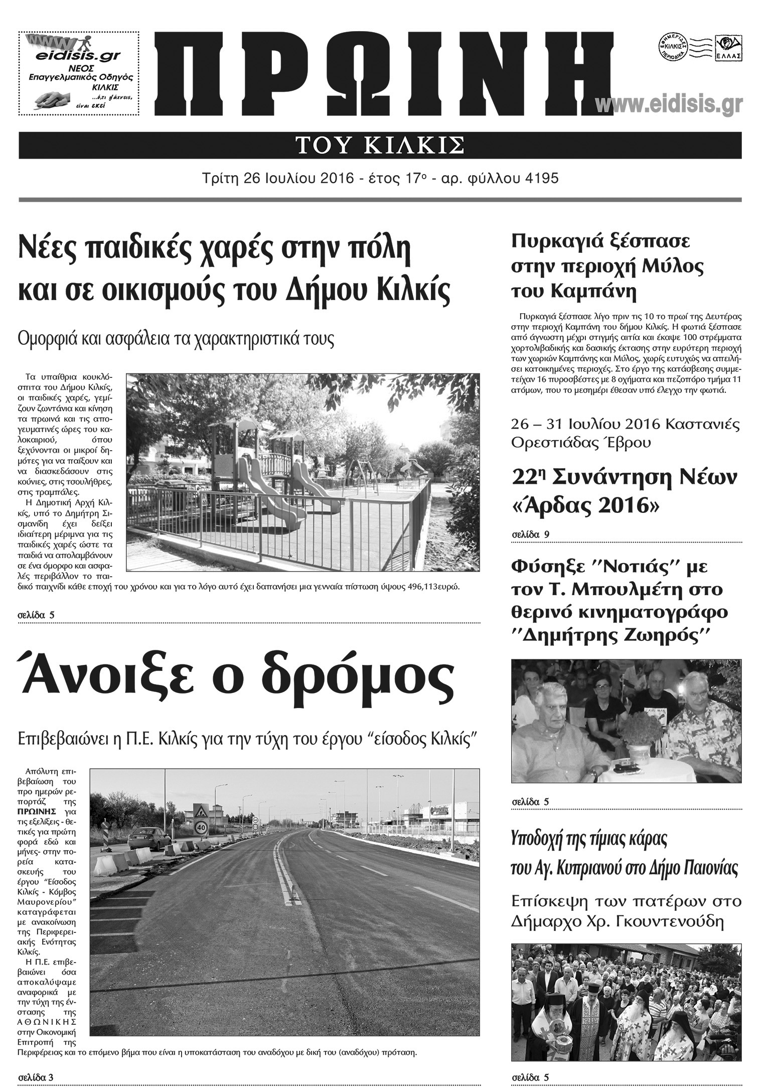 Πέντε χρόνια πριν. Διαβάστε τι έγραφε η καθημερινή εφημερίδα ΠΡΩΙΝΗ του Κιλκίς (26-7-2016)