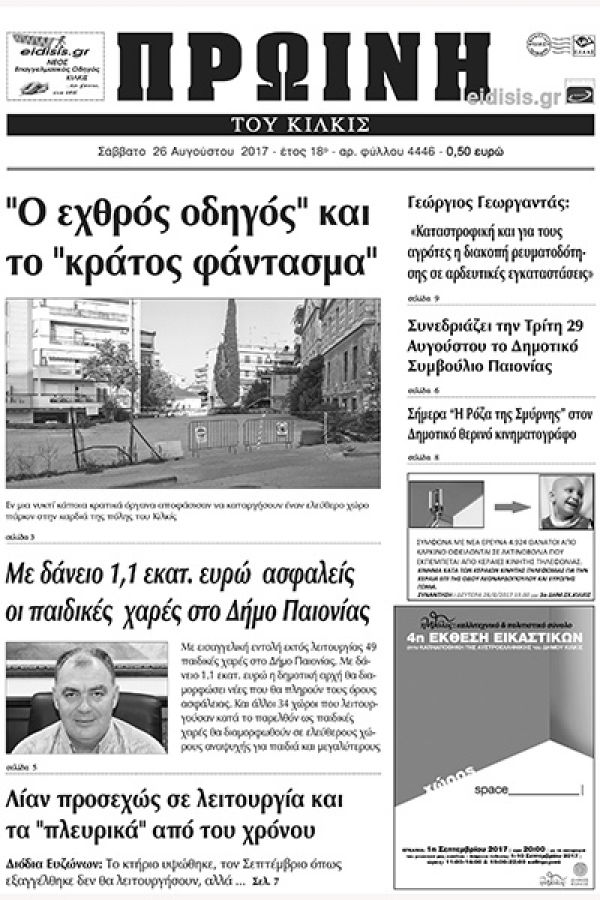 Πέντε χρόνια πριν. Διαβάστε τι έγραφε η καθημερινή εφημερίδα ΠΡΩΙΝΗ του Κιλκίς (26-8-2017)