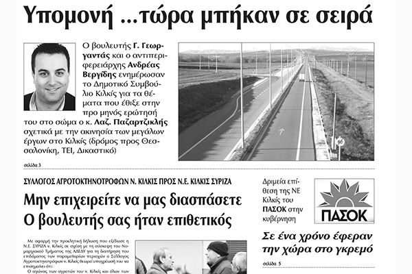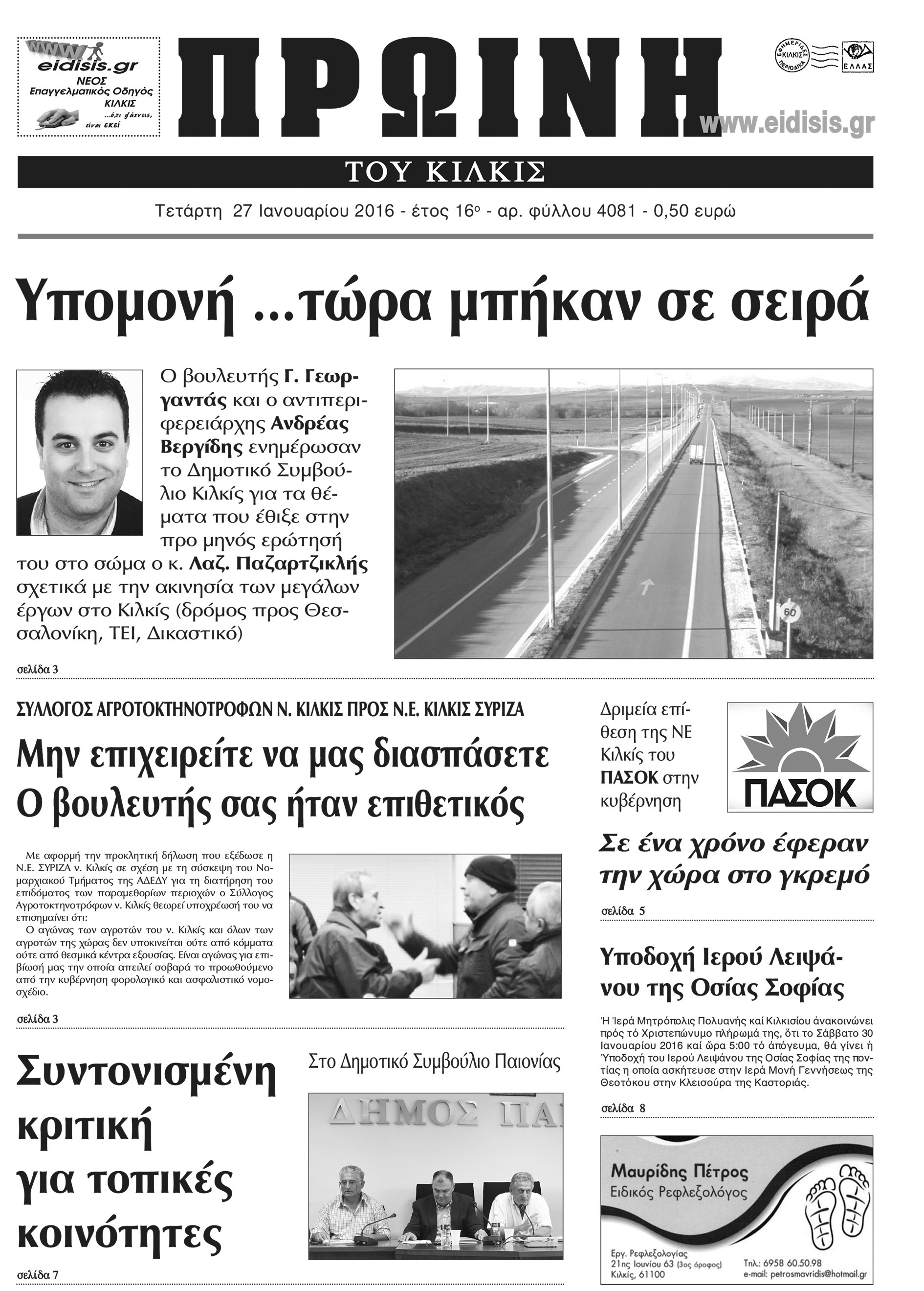 Πέντε χρόνια πριν. Διαβάστε τι έγραφε η καθημερινή εφημερίδα ΠΡΩΙΝΗ του Κιλκίς (27-1-2016)