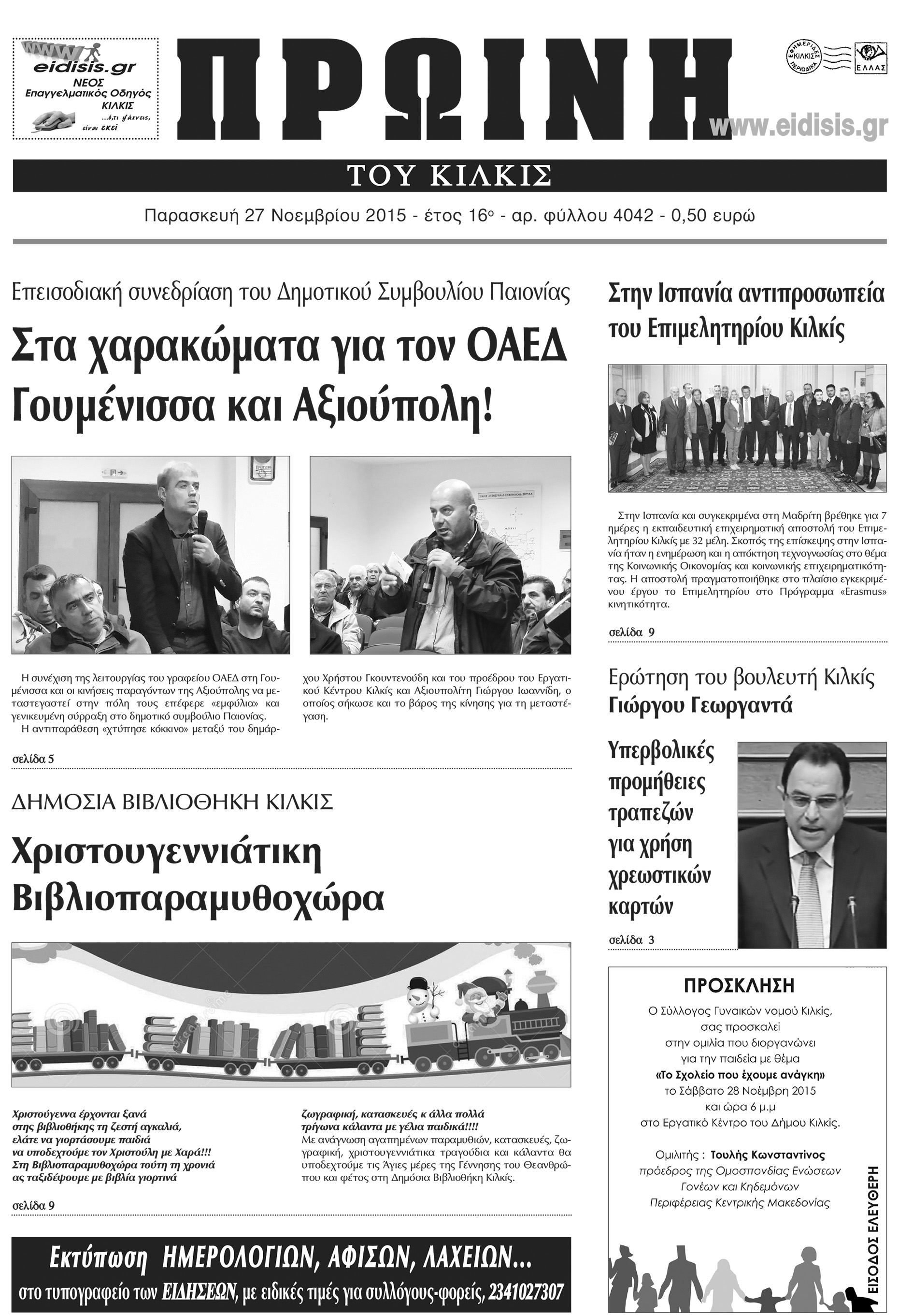 Πέντε χρόνια πριν. Διαβάστε τι έγραφε η καθημερινή εφημερίδα ΠΡΩΙΝΗ του Κιλκίς (27-11-2015)