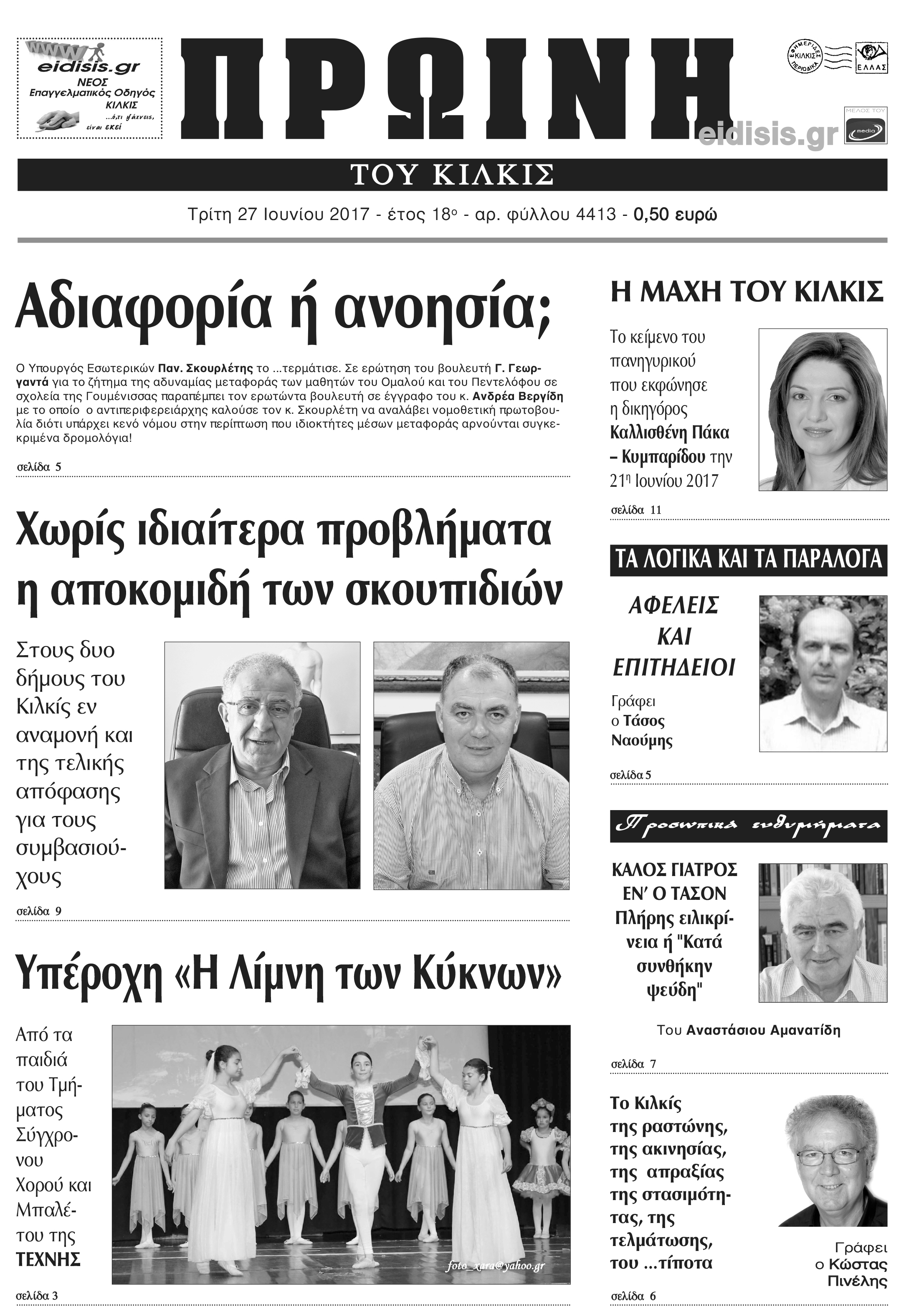 Πέντε χρόνια πριν. Διαβάστε τι έγραφε η καθημερινή εφημερίδα ΠΡΩΙΝΗ του Κιλκίς (27-6-2017)